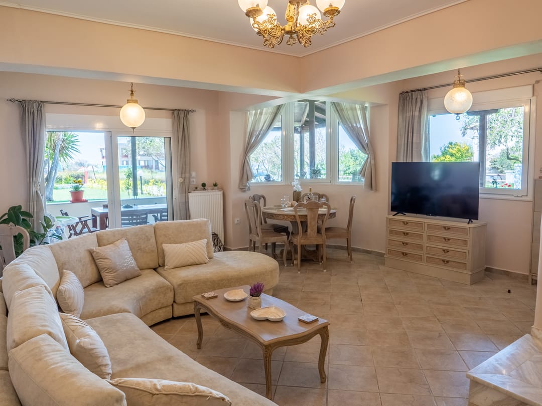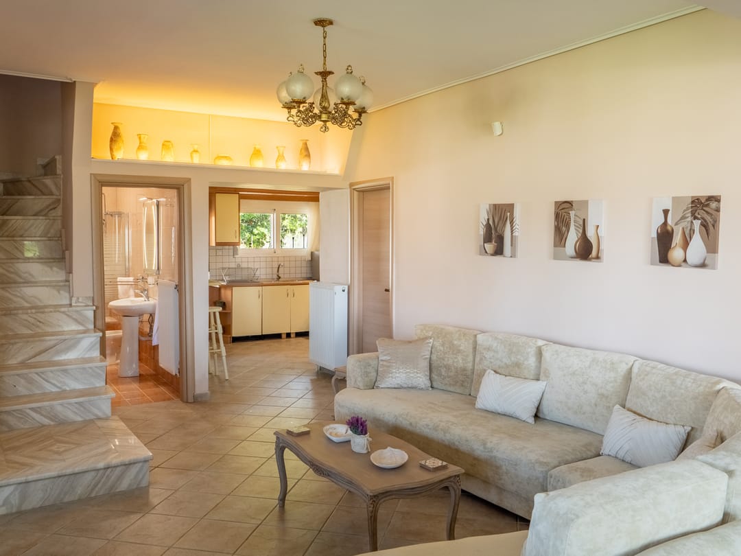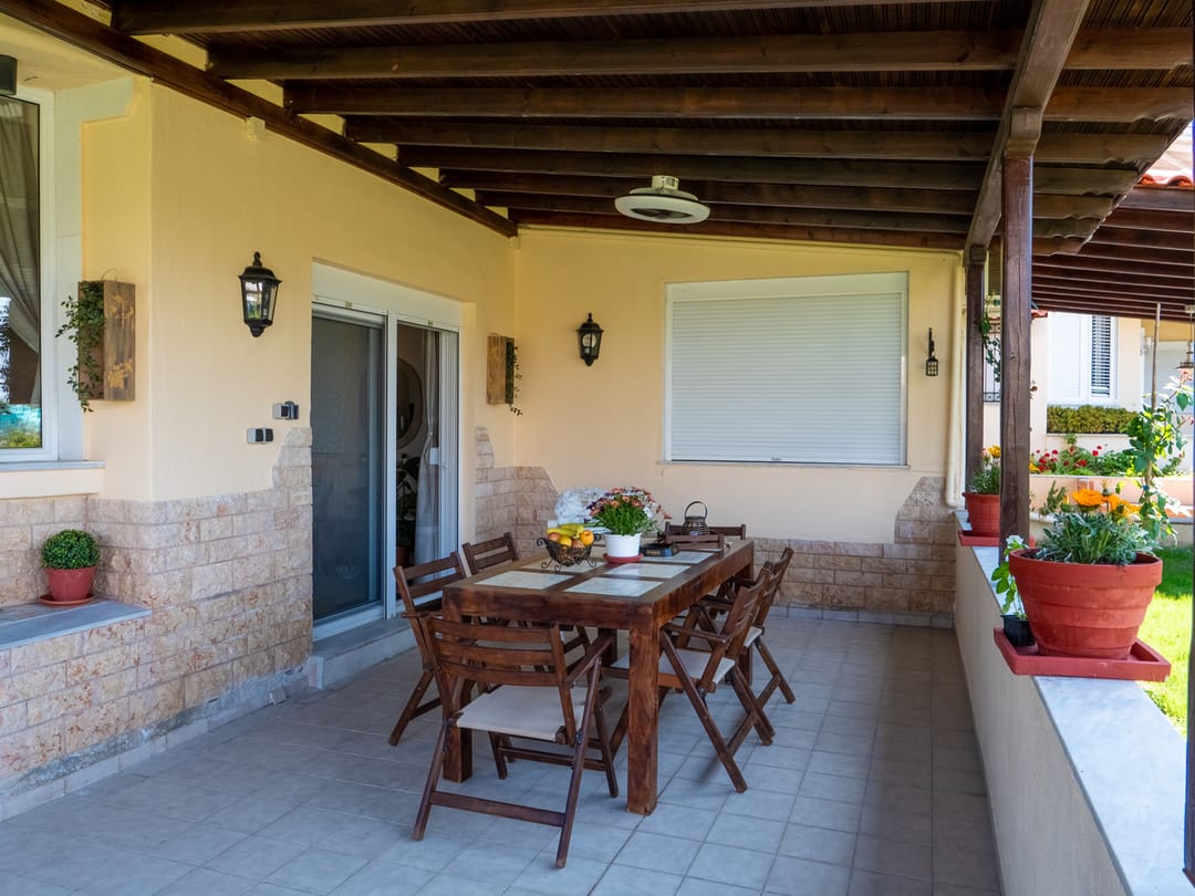 Beautiful family villa Garda with 3 bedrooms and a nice green garden, in Possidi area, on the peninsula of Kassandra, Halkidiki, for rent.