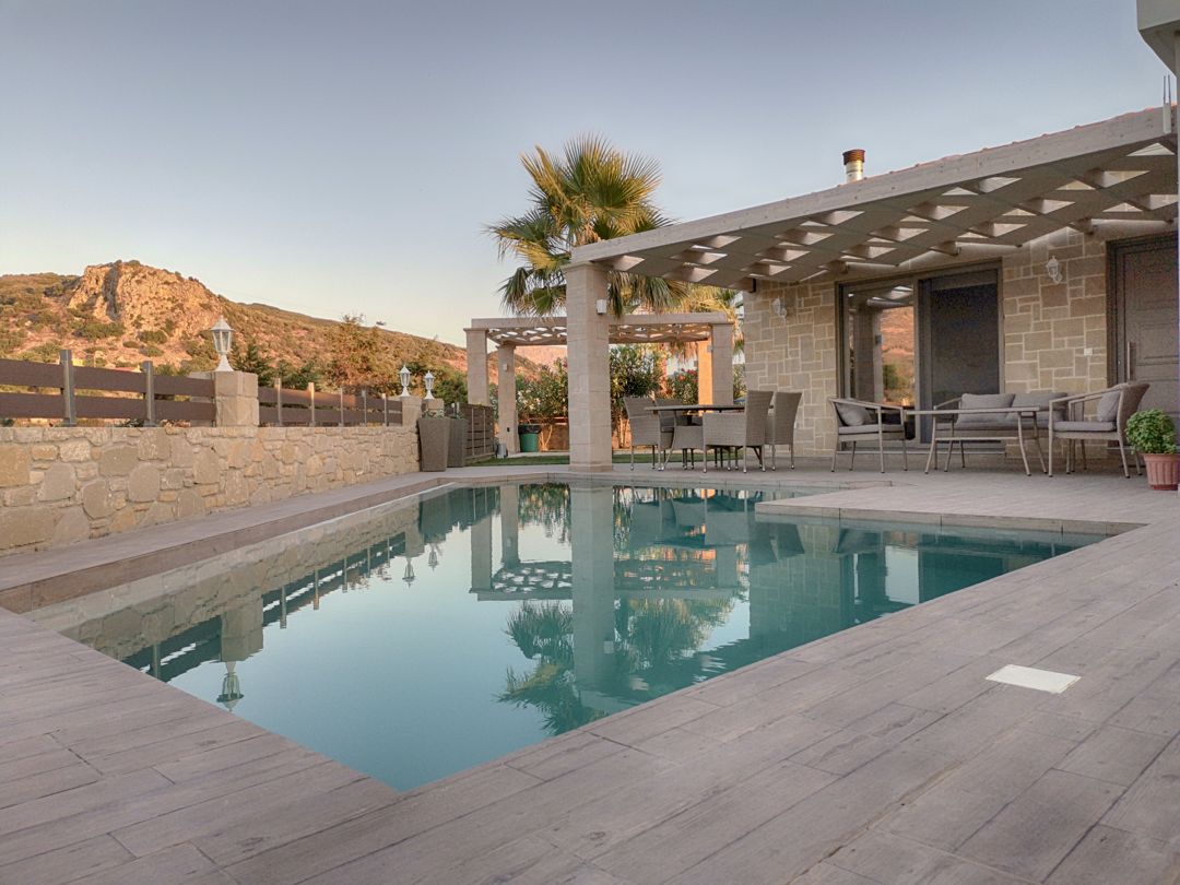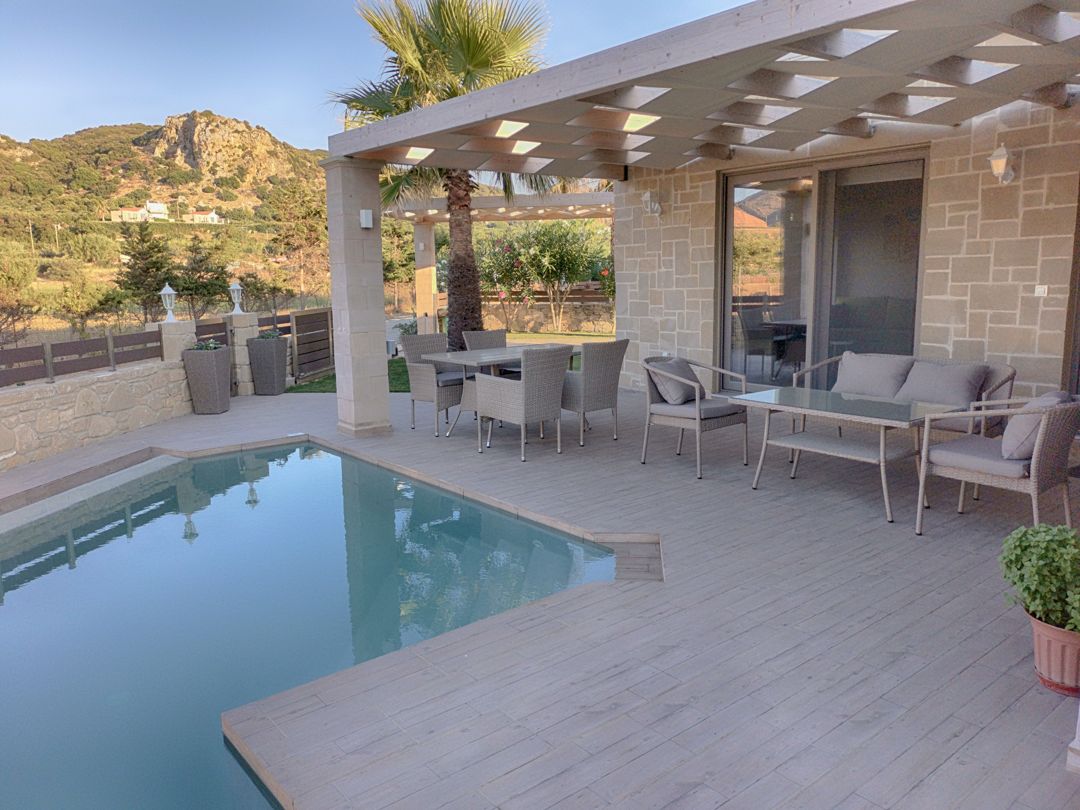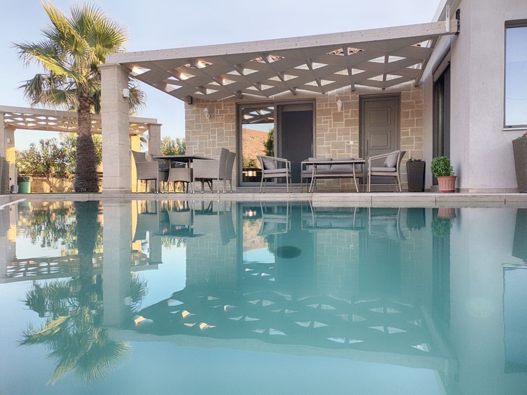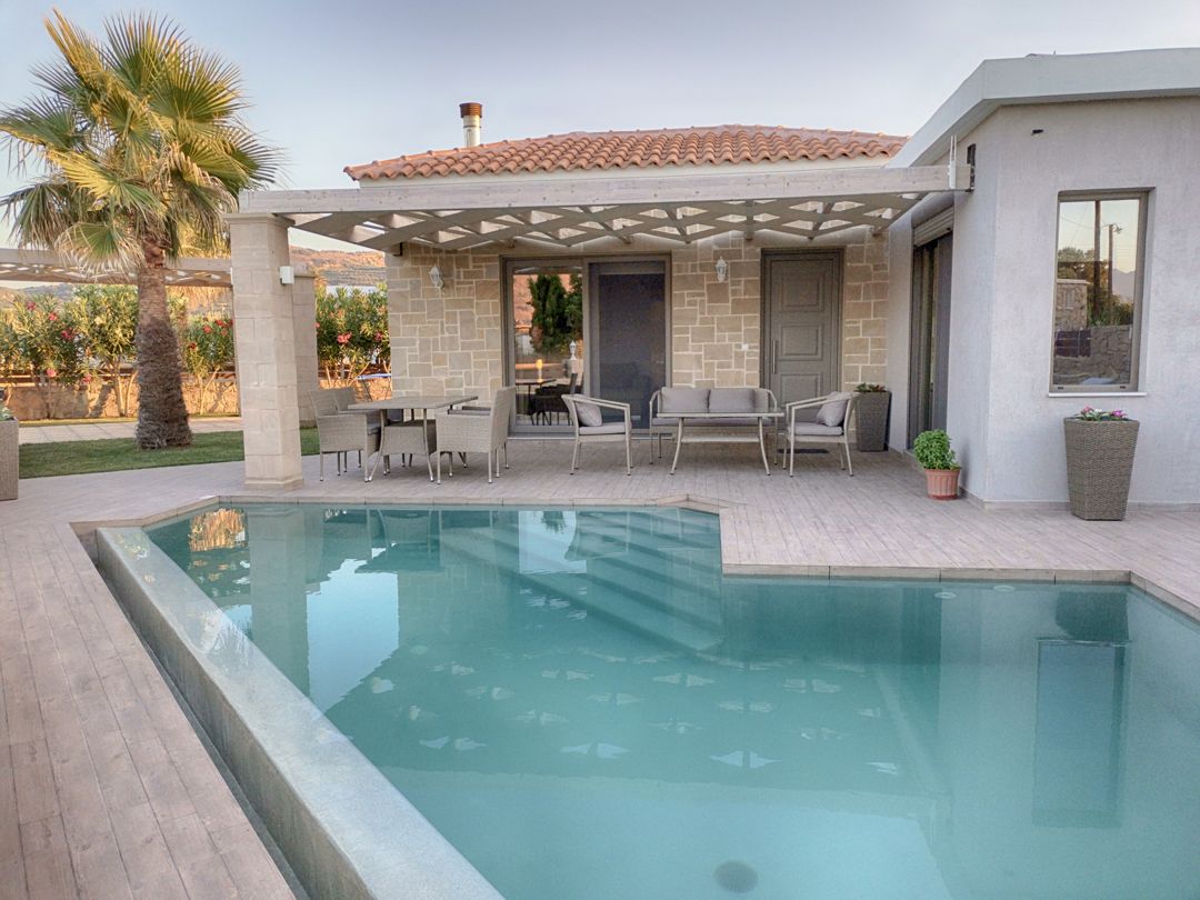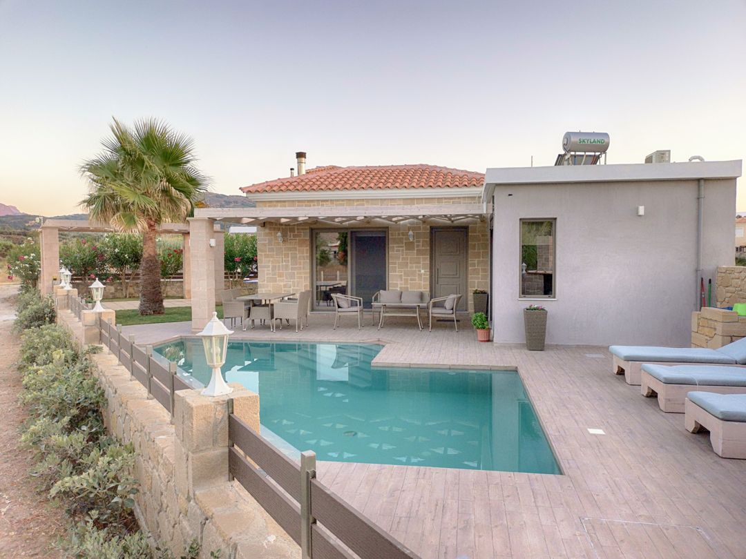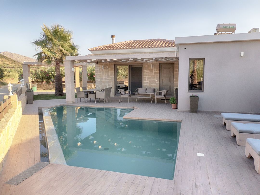 An elegantly decorated villa with modern furnishings and soft tones is ideal for you who wish to spend your vacation relaxing in a beautiful house with an outdoor pool, with easy access to the best beaches of Crete island.