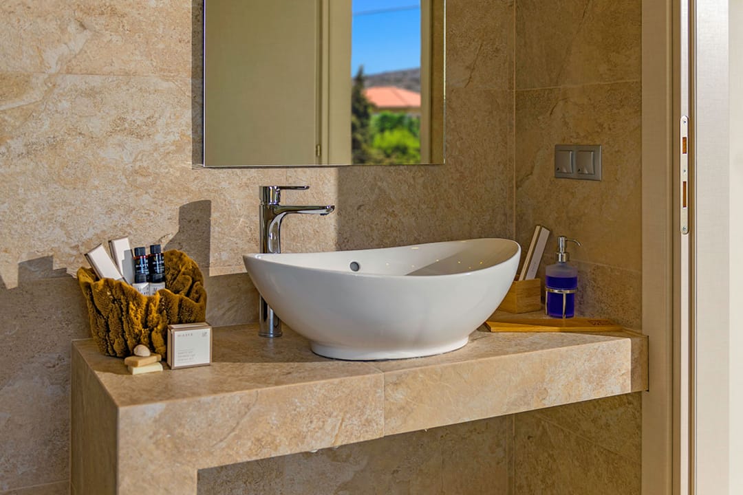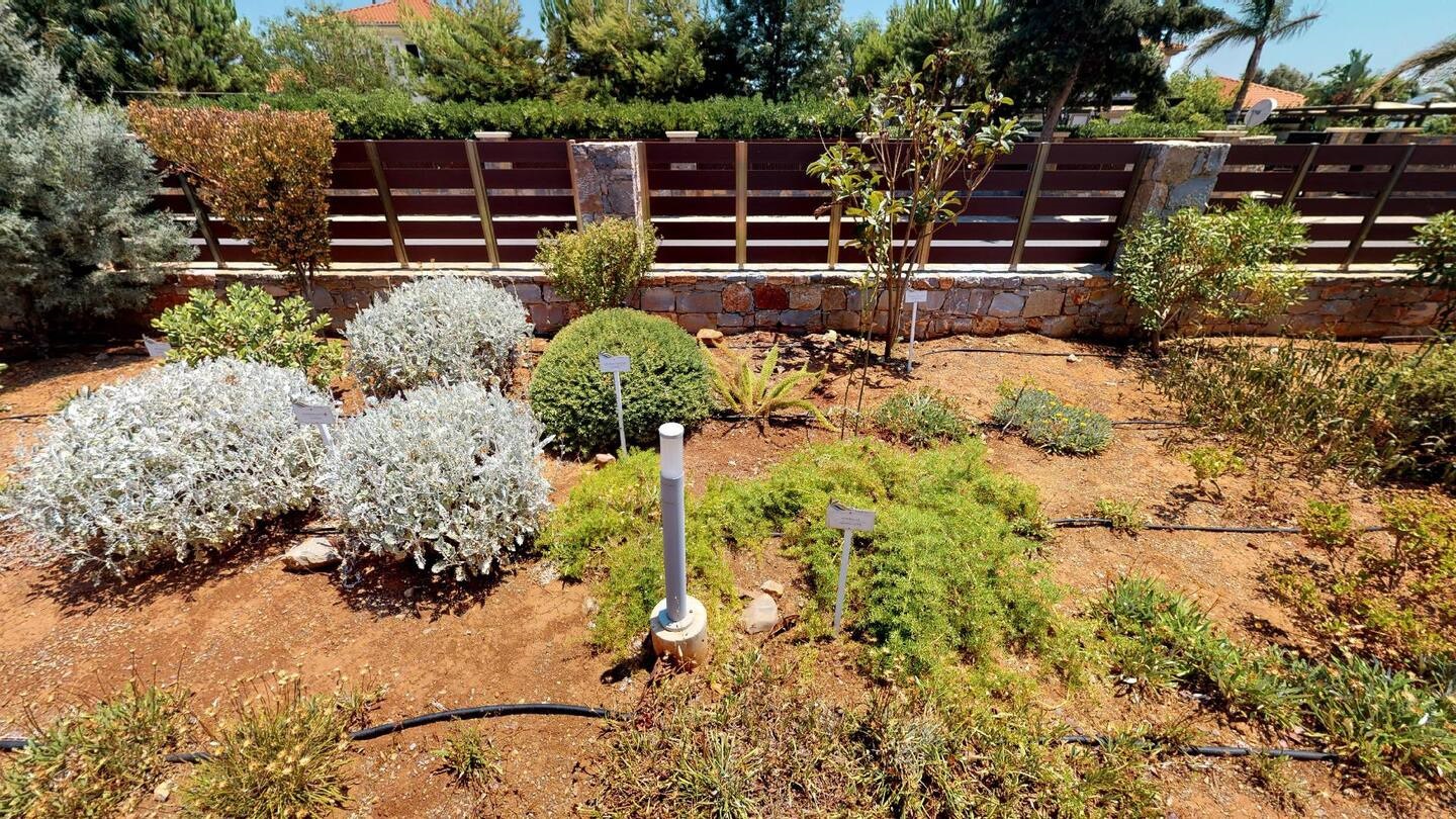 The distinctive feature of this villa is its own spa and fitness center with many useful features, creating the perfect conditions for complete relaxation and well-being. The villa is entirely eco-friendly, equipped with an ecological geothermal climate control system, and uses modern energy technologies. The villa is surrounded by a 1500 m2 garden with hundreds of different species of local trees (olives, lemons, oranges, bananas, figs) and herbs (thyme, oregano, mint, etc.).