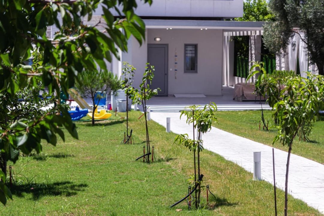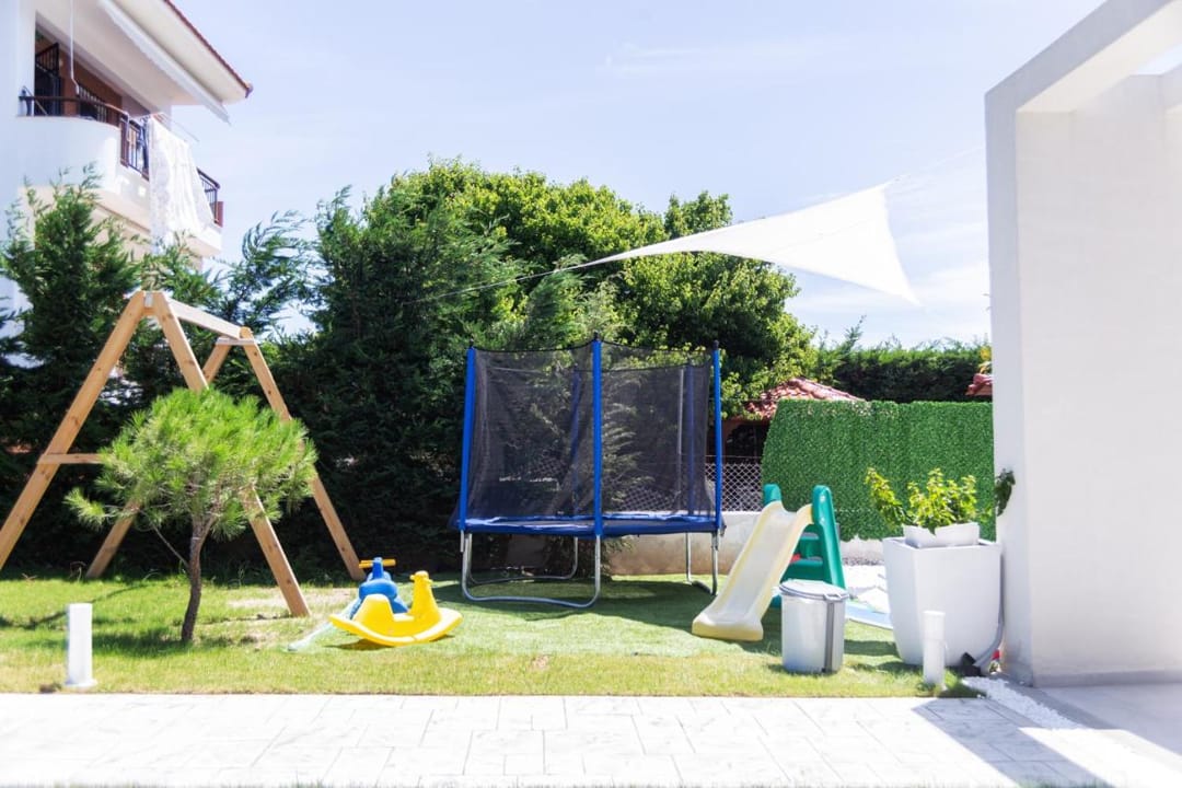Nestled on a spacious fenced plot with breathtaking sea and sunset views, Villa Inga is designed in a modern high-tech style, featuring high-quality materials and elegant furnishings. The peaceful location ensures a relaxing stay with no nearby noise, making it ideal for families with children. The garden includes a small playground with a trampoline and table tennis. Guests can also enjoy free bicycles for a quick ride to the center of Nea Skioni.