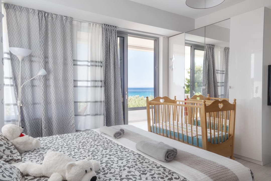 - First master bedroom: Double bed, ensuite bathroom, sea view