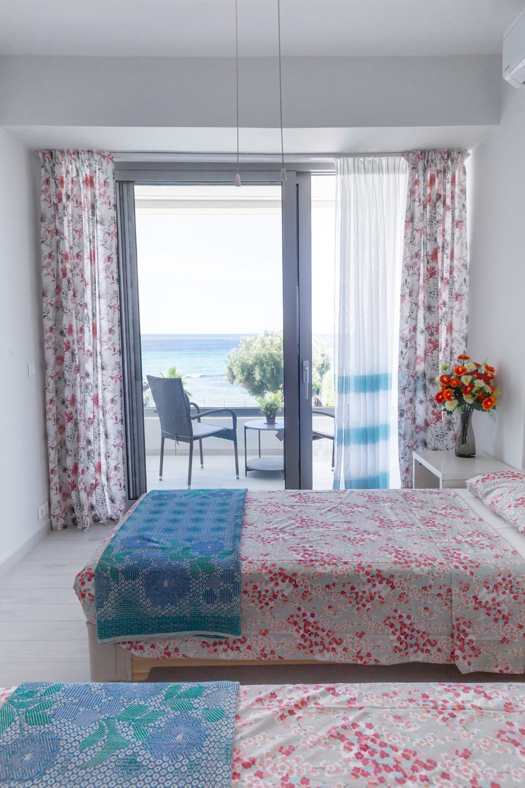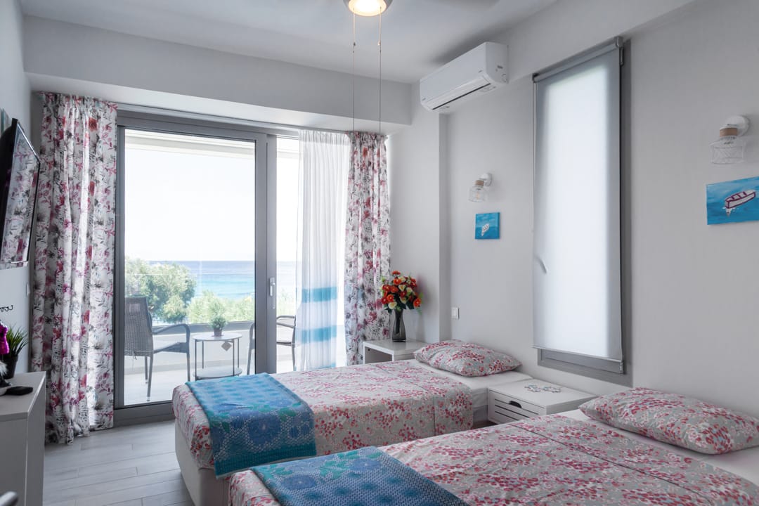 - Second bedroom: Two single beds, sea view