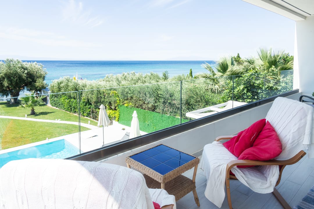 - Large balcony with sea and garden views