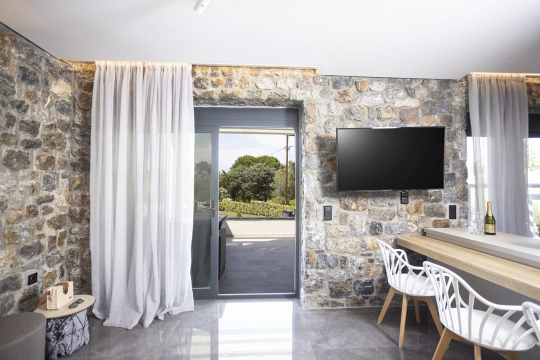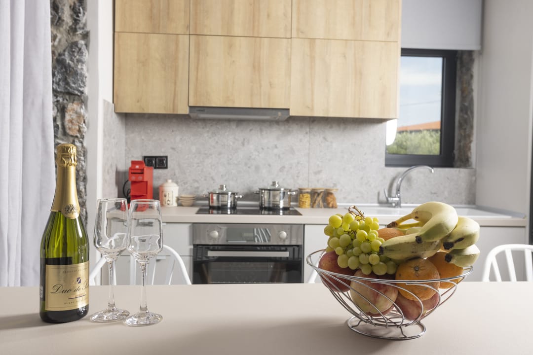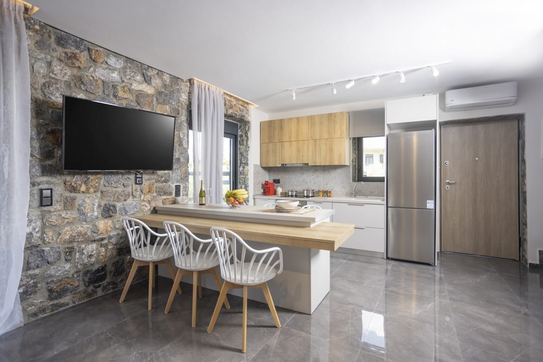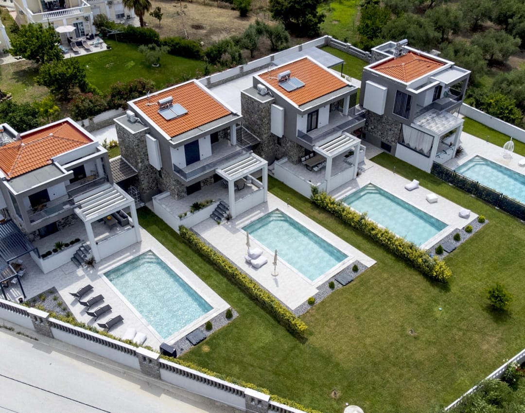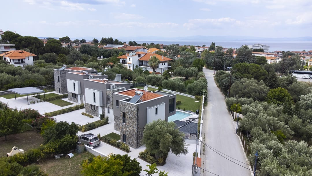 The villa was built in 2021 in a quiet secluded location, in a complex of 4 villas. Distance to the nearest beach bar Achinos is 500 m, to the supermarket is 200 m, and the restaurant Capari is 150 m (there is a delivery to the villa). In the nearest village of Hanioti, just a 5-10 minute walk, you will find water sports, restaurants, bars, stores, and entertainment.