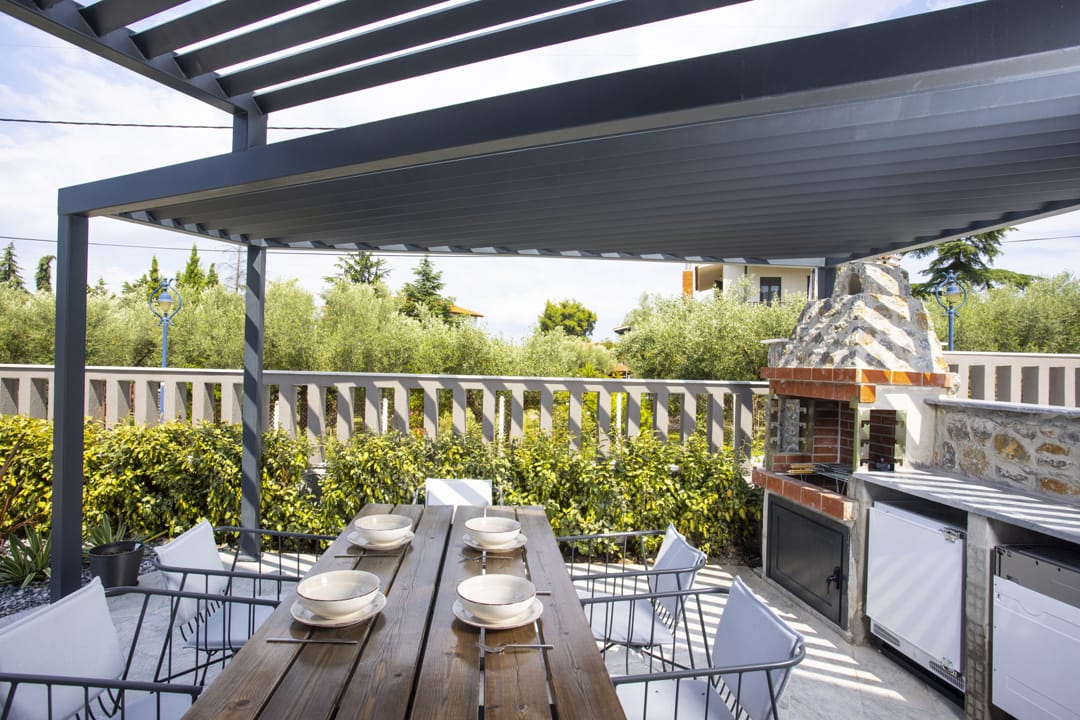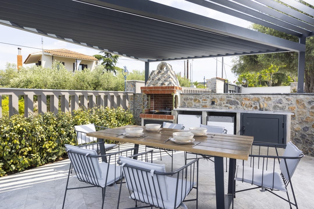 - Summer kitchen with barbecue, dining table, drinks fridge, dishwasher and crockery