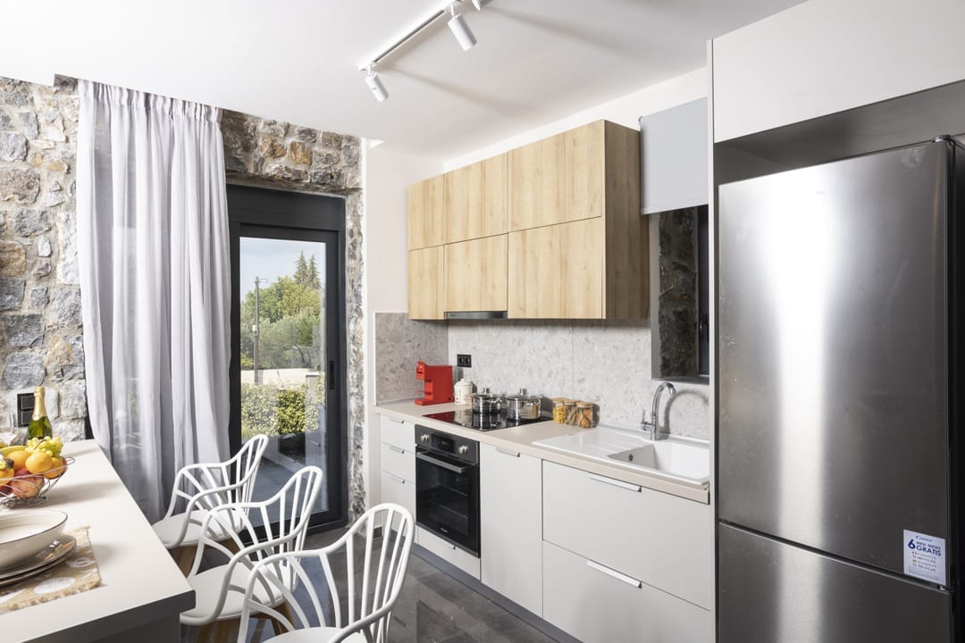 - Refrigerator/freezer, ice maker, dishwasher, toaster, cooktop and oven, Nespresso coffee maker