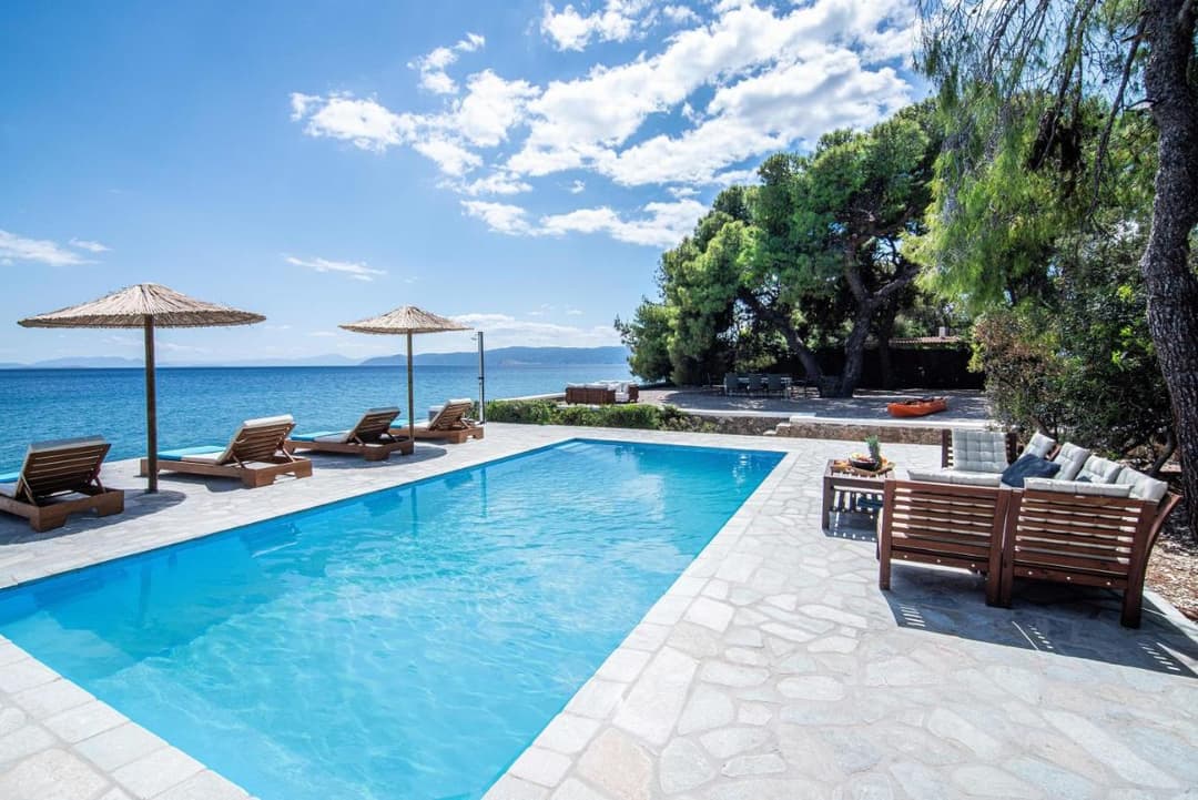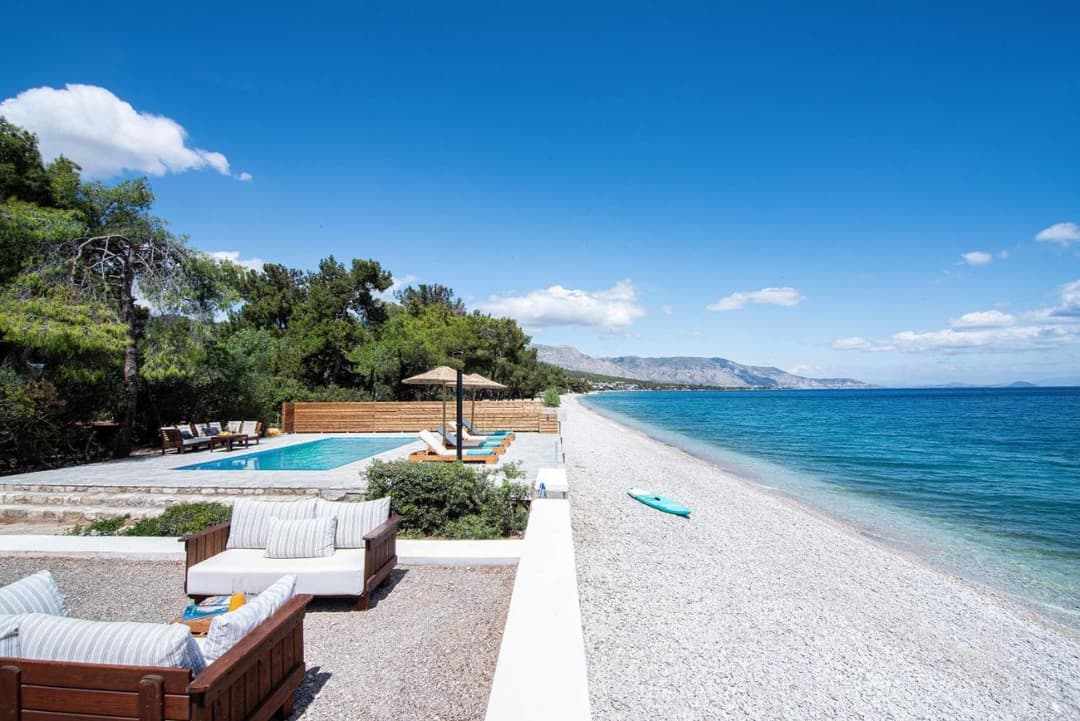Rent Villa Juno and experience an unforgettable beachfront holiday in Agioi Theodoroi, just 20 km from Loutraki.