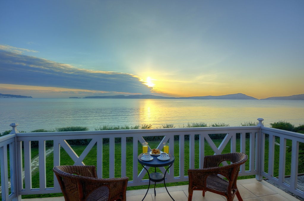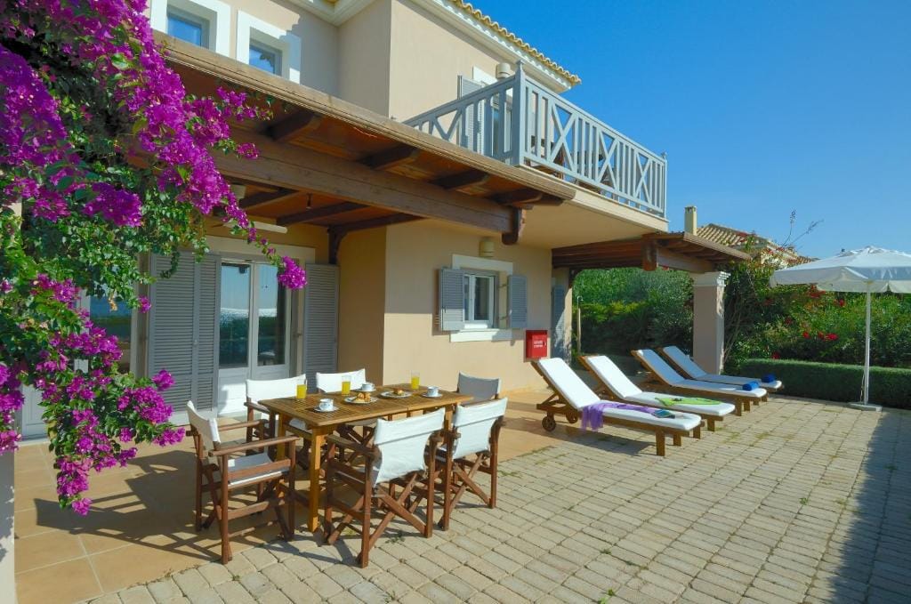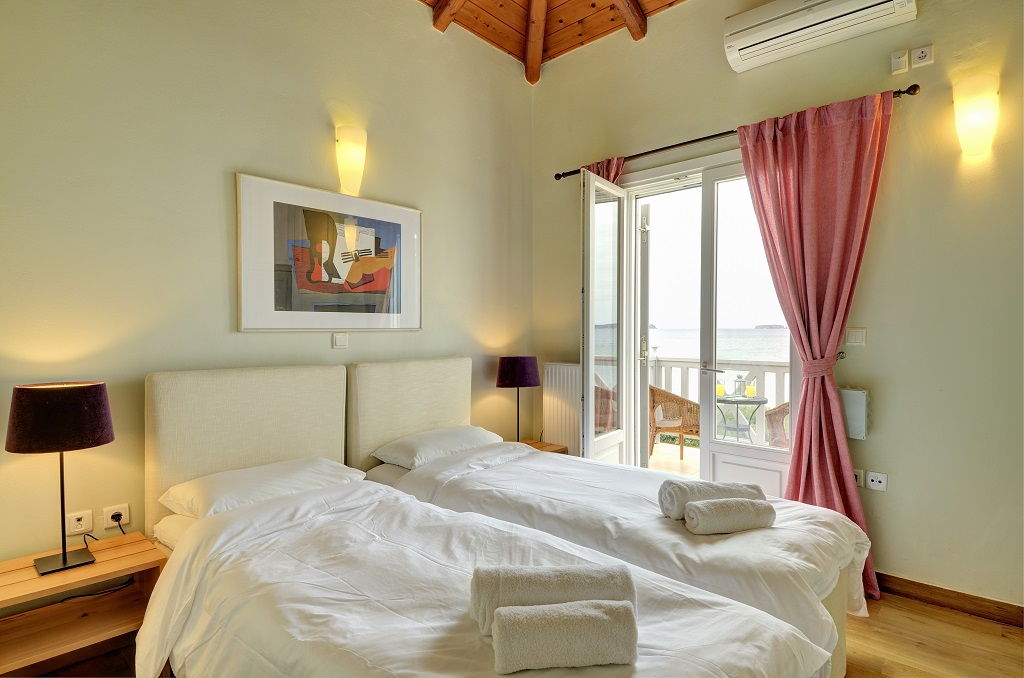 Elegant comfortable beachfront villa Kassy with 2 bedrooms and a private garden in Navarino Bay, Peloponnese, for rent.