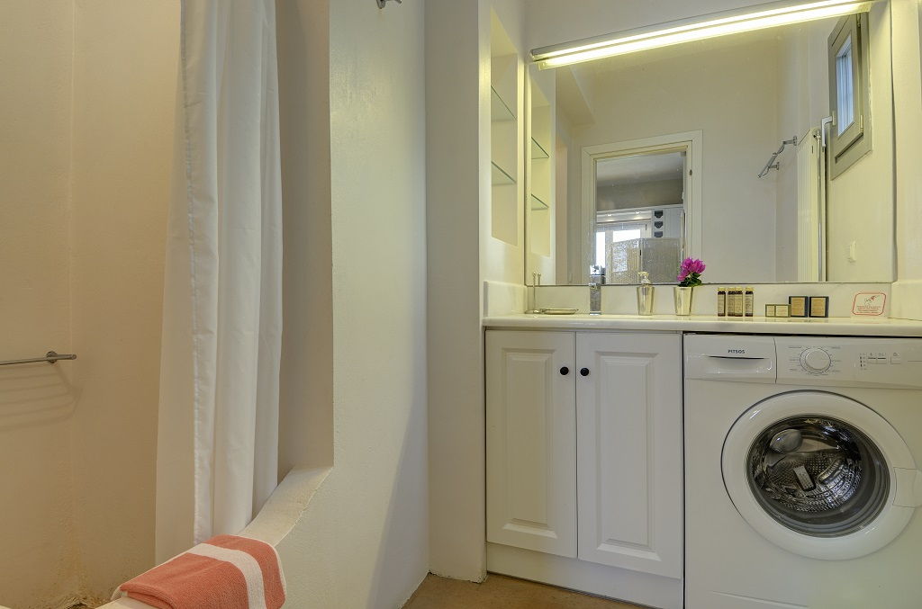- Bathroom with a shower and washing machine