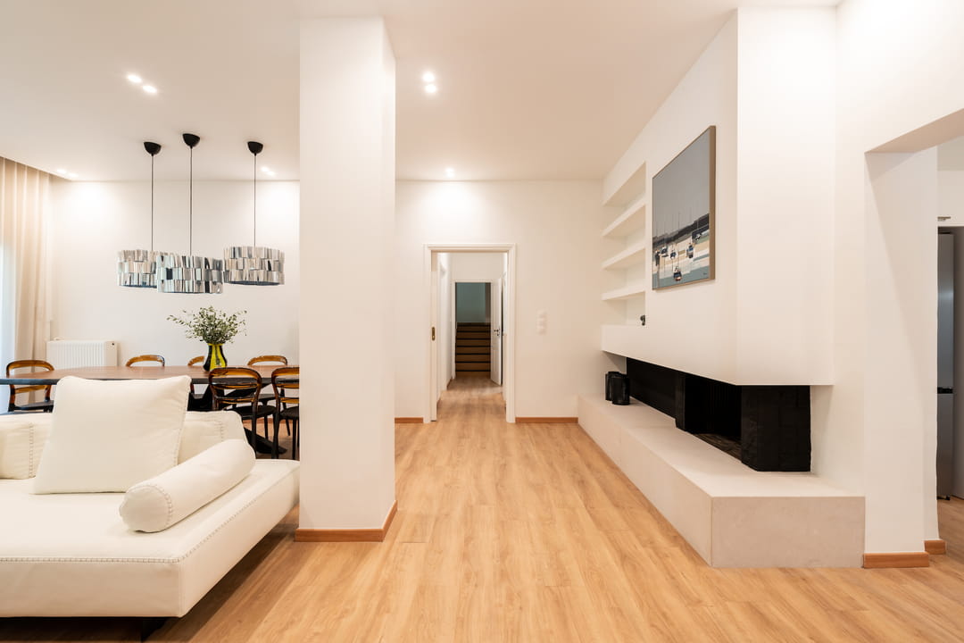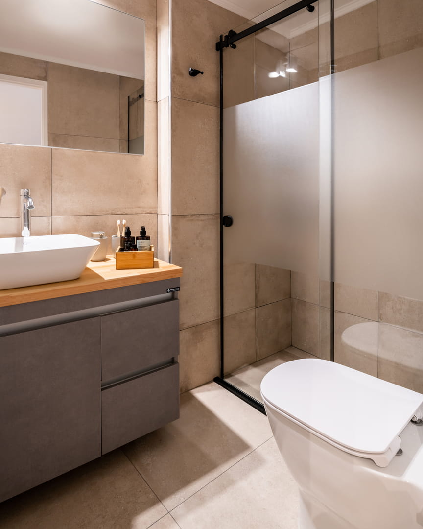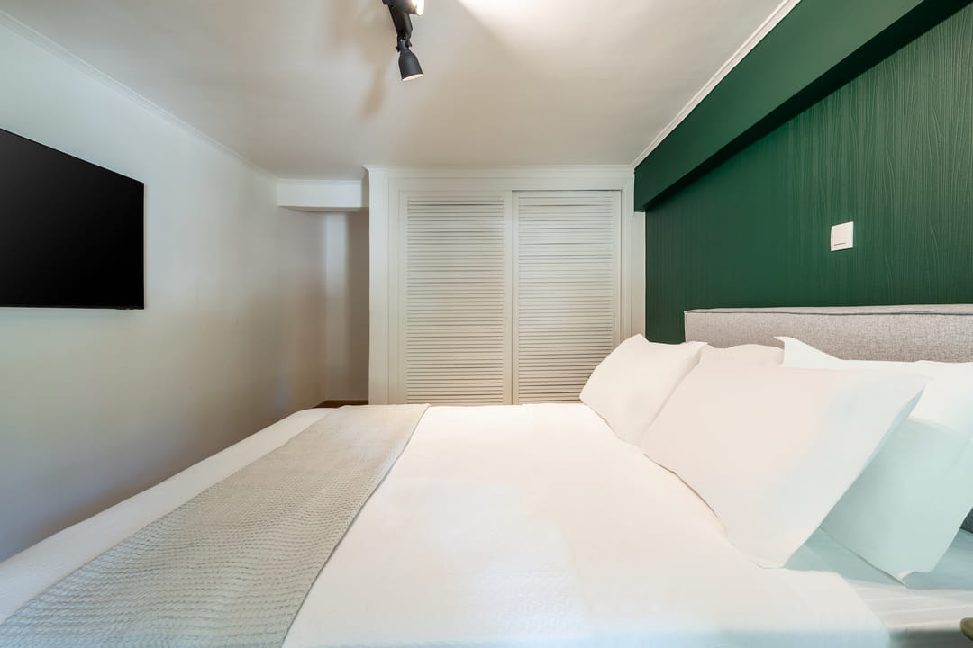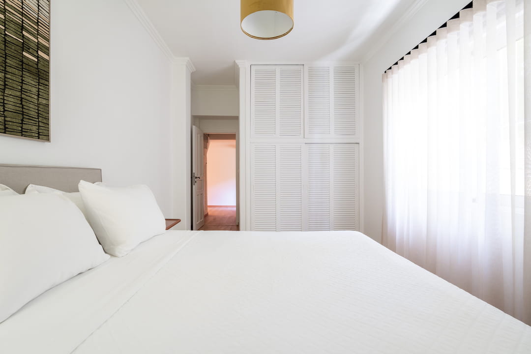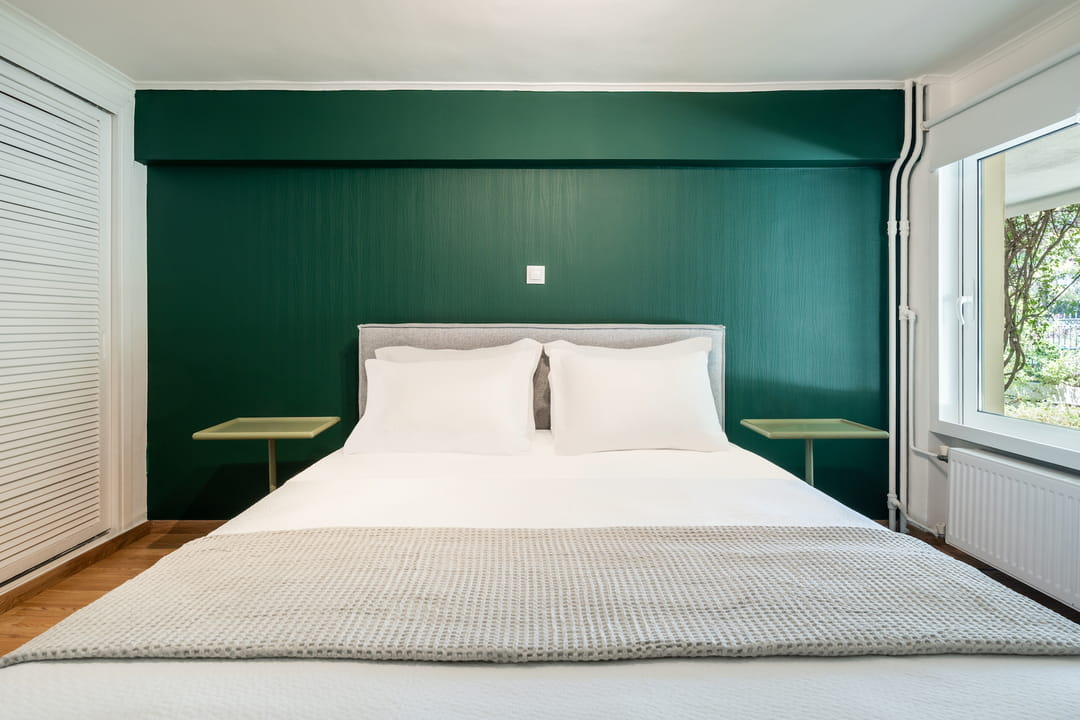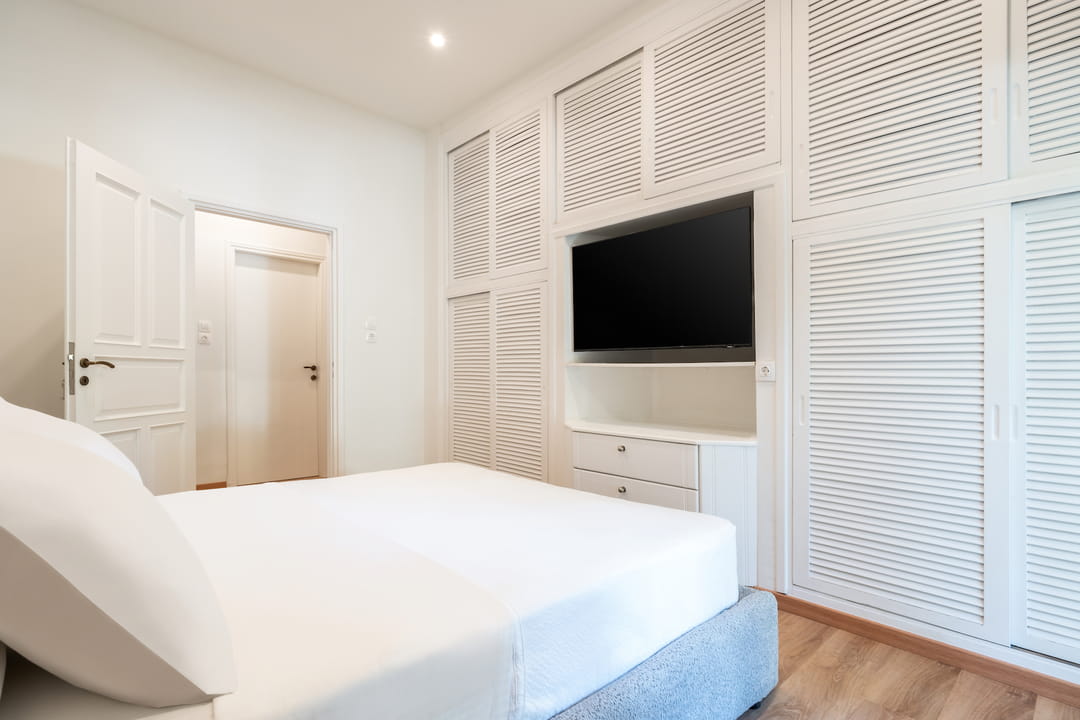 The apartment boasts a contemporary, open-plan layout combining a spacious living room, dining area, and fully equipped kitchen. Designed with a minimalist luxury aesthetic, the interiors are light-filled and thoughtfully furnished for both style and functionality. Each bedroom is equipped with high-quality linens, ample storage space, and smart lighting solutions to ensure a peaceful and comfortable stay.