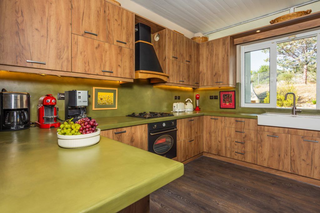 - The spacious, warm, country-style kitchen, almost unified with the backyard and the barbeque area, is very well equipped for any meal preparation. It has all kinds of kitchenware, utensils, coffee machines, electric kettle, toaster, microwave, refrigerator, oven and dishwasher.