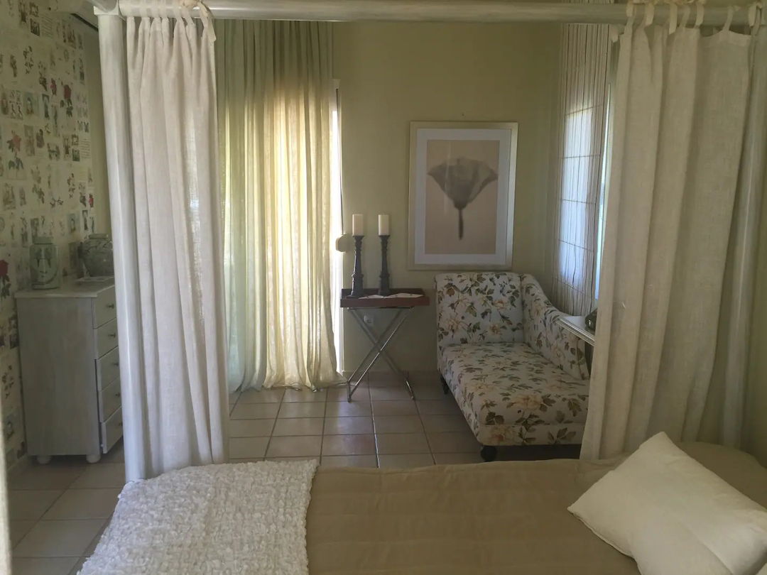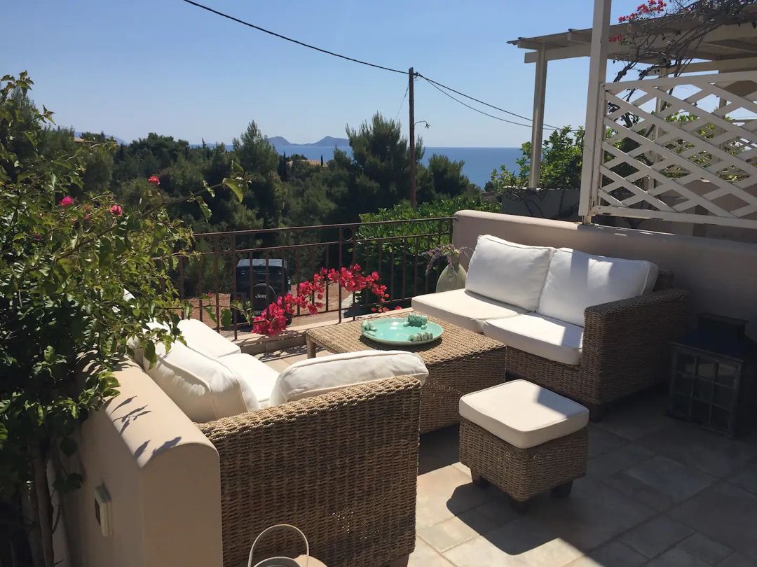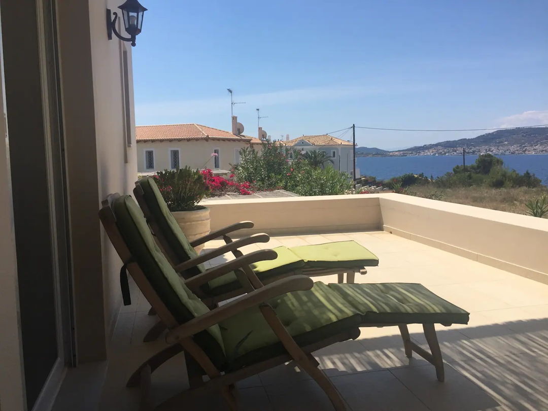 - 5th bedroom with double bed, a small seating area, a large veranda with sun loungers and stunning views of the island of Spetses and the sea, and a balcony overlooking the garden
