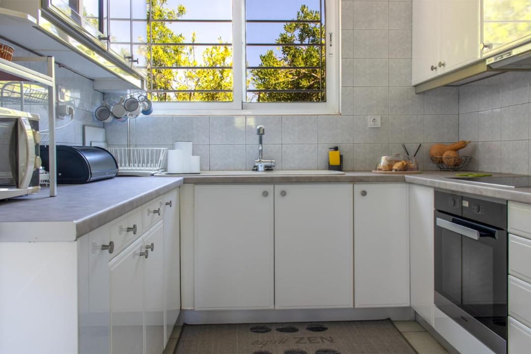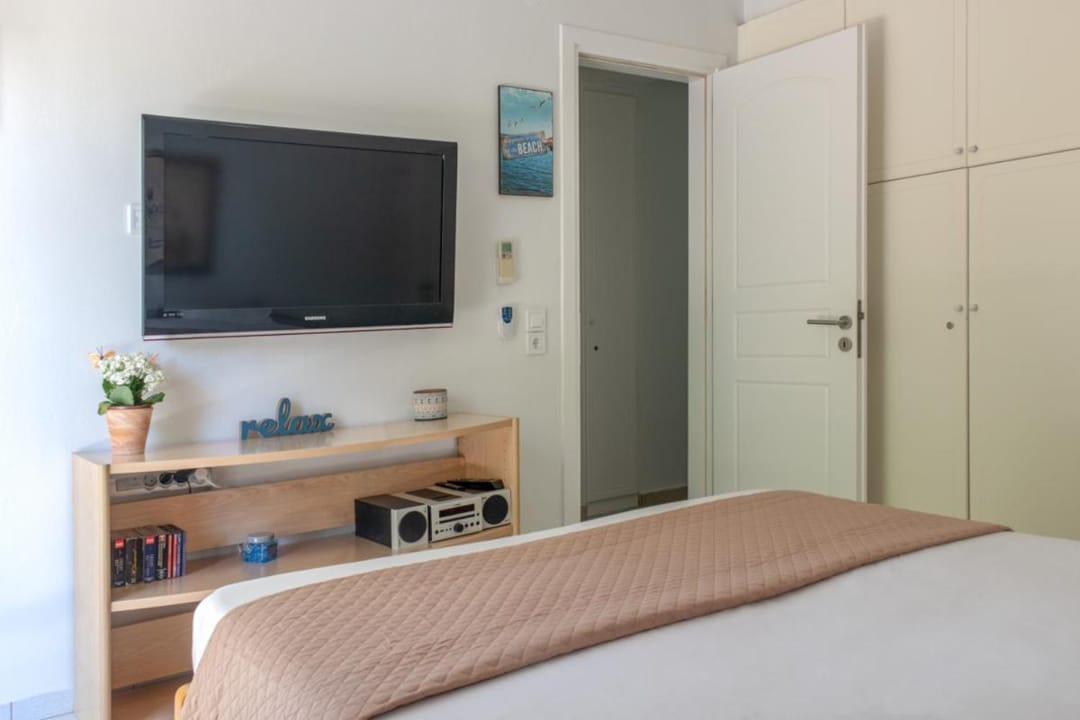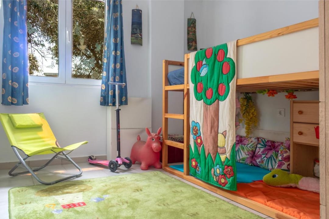 The sandy beach of Limani Pasa is only a 3-minute walk away. There is an organized part of the beach with umbrellas, sunbeds, and a canteen. On the other side of the beach, you can enjoy the sun on your towel. Next to the beach, you will find a municipal basketball and football court. The roads around the house are ideal for walking and cycling.
