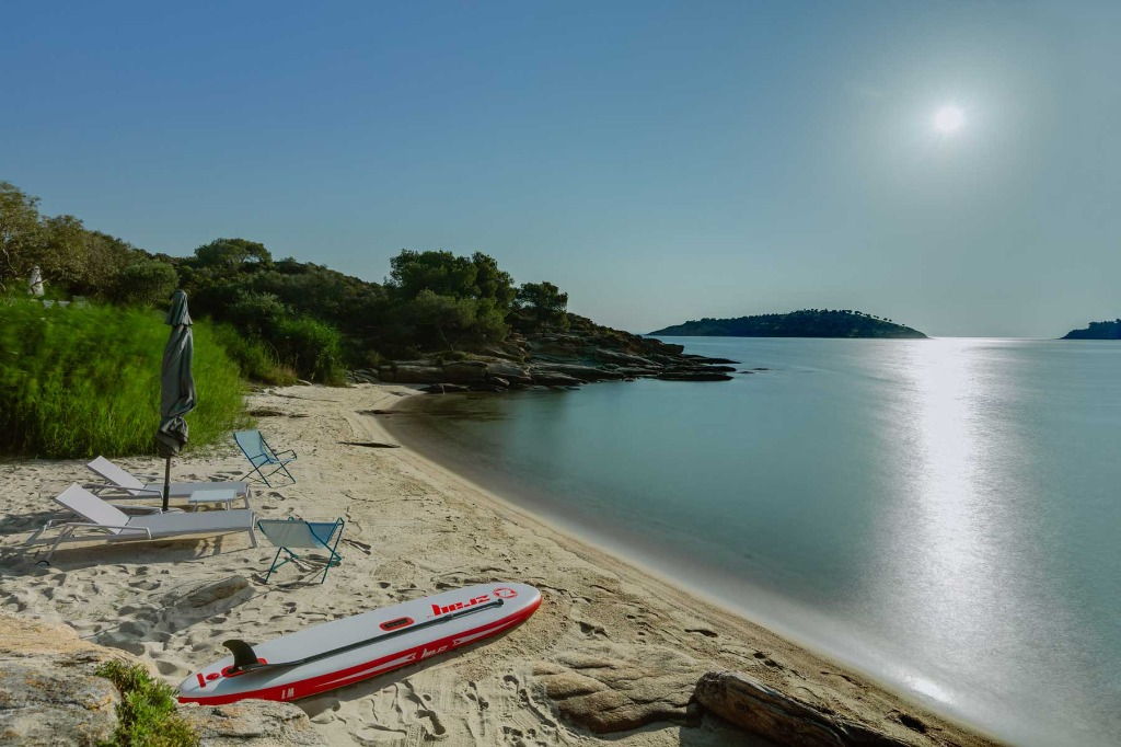 The villa is located just across the islet of Kalogria, in one of the most prestigious spots of the Sithonia peninsula. The guests will enjoy comfortable rooms, a Mediterranean garden and a stunning beach setting.