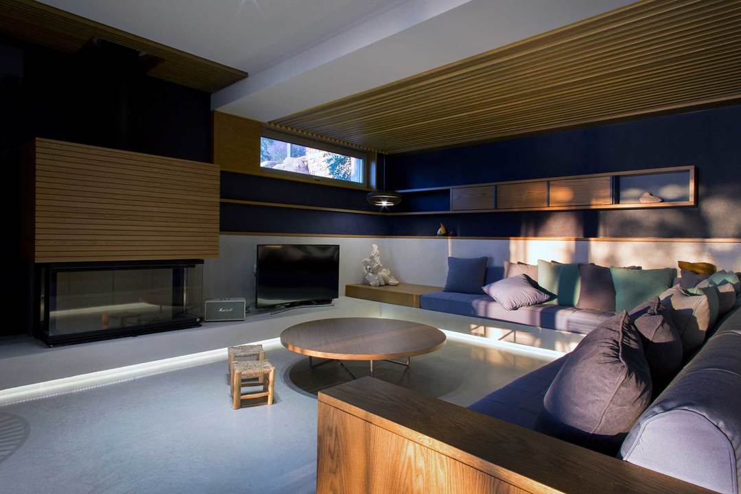 - Living area with large flatscreen satellite TV, DVD player, surround sound system and PlayStation