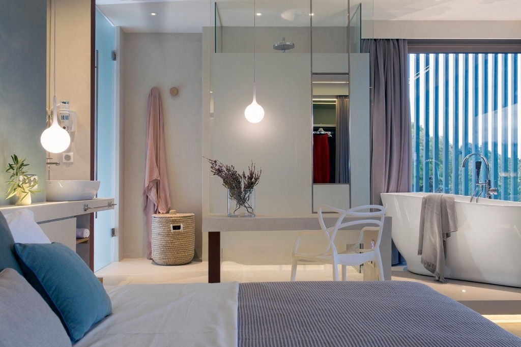 - 2nd bedroom: a king-size double bed, with en-suite bathroom with a rain shower, a bathtub in room, TV, balcony overlooking the sea