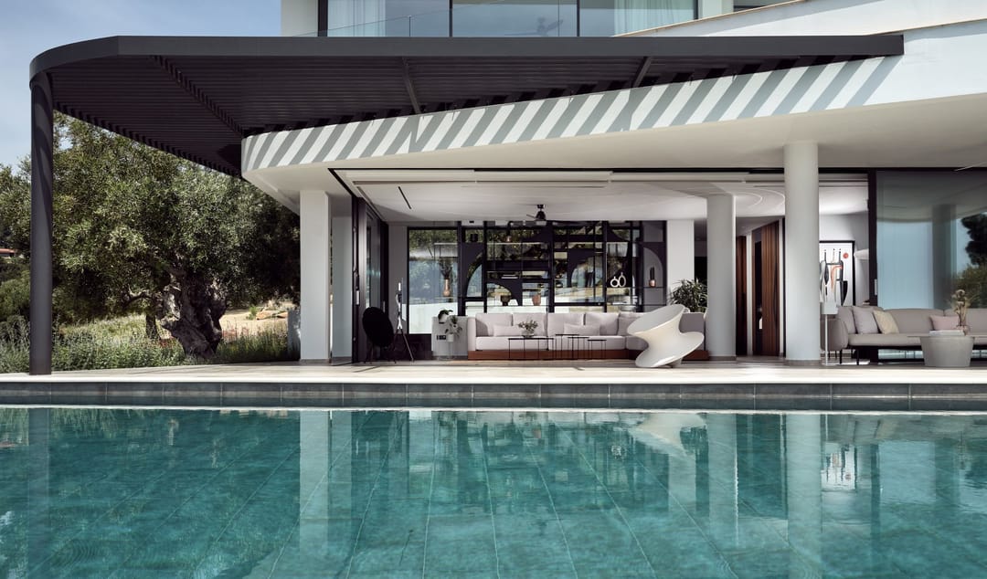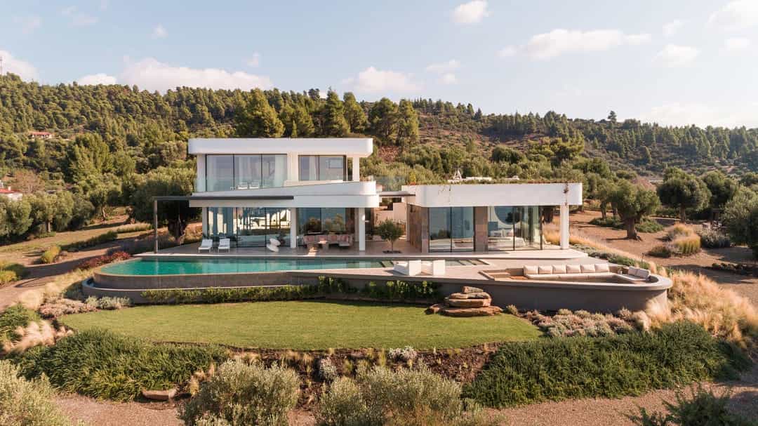 The exclusive luxurious villa Linda, with 5 bedrooms, a private pool, and direct access to a sandy beach, is located along the seafront of the Sithonia peninsula, Halkidiki, for rent.