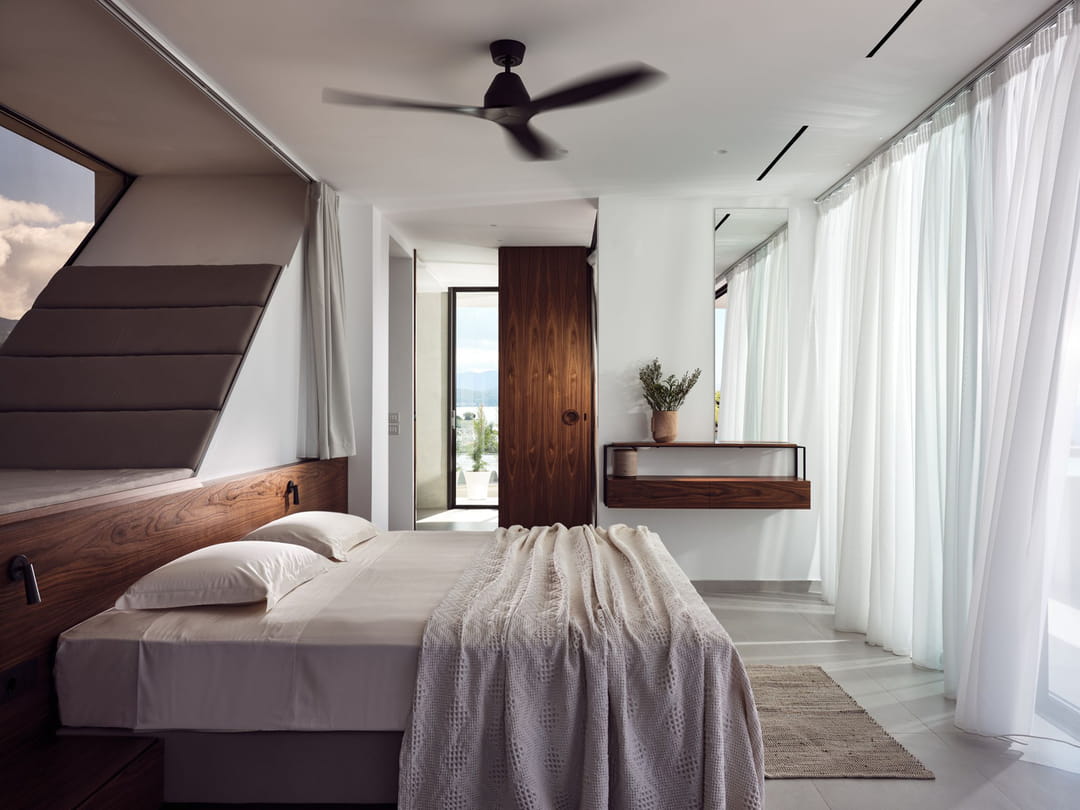 - 4th bedroom with double bed, private bathroom, and access to a terrace overlooking the sea