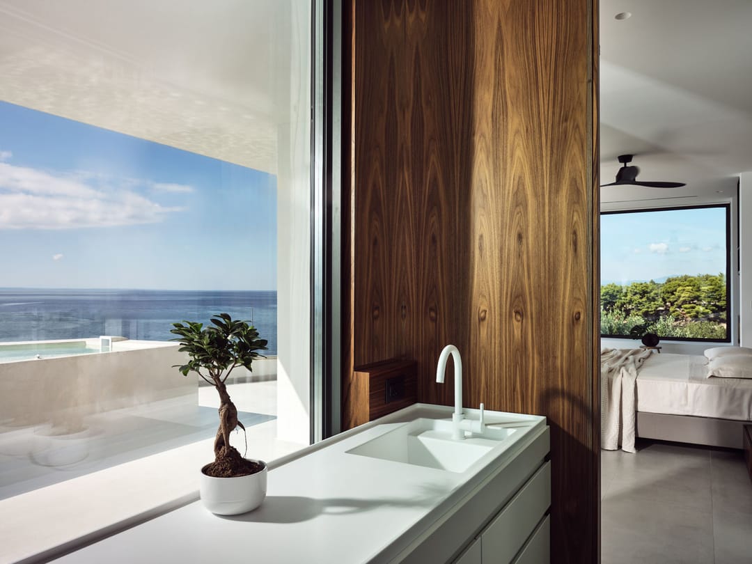 Employing cutting-edge architectural techniques, the villa blends sophistication and style. With an emphasis on modern elegance, the villa welcomes an abundance of natural light through its expansive windows, illuminating its pristine and contemporary interior decor. The infinity pool creates a seamless connection with the sea, offering a mesmerizing vista.