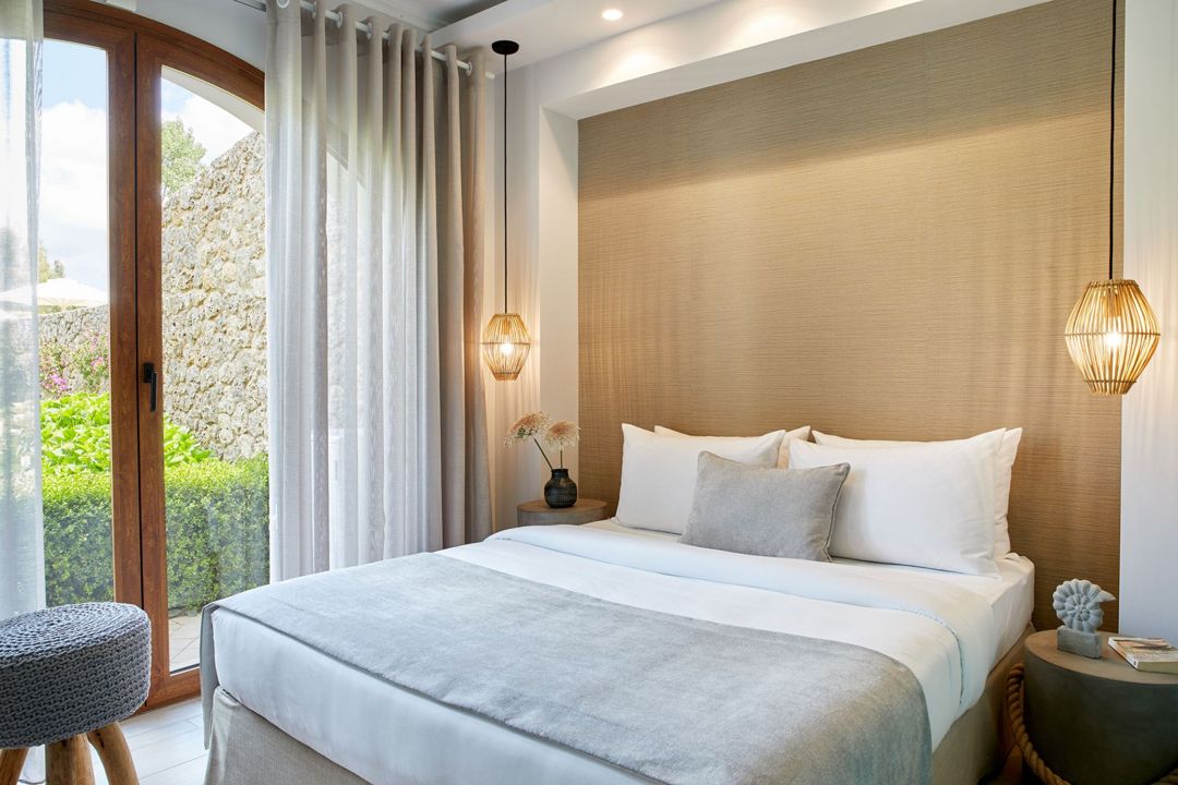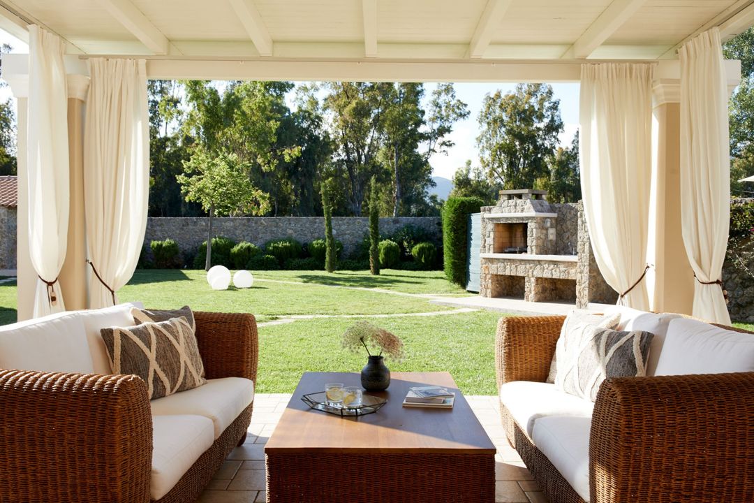 - Extensive gardens with colorful geraniums, calendulas, begonias, and sweet-smelling lavender. Pines and olive trees are around.