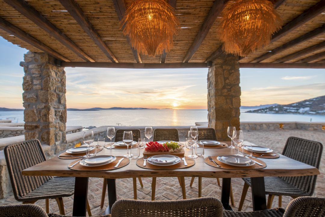 - Separate dining areas, shaded by pergolas and unparalleled sea & sunset view