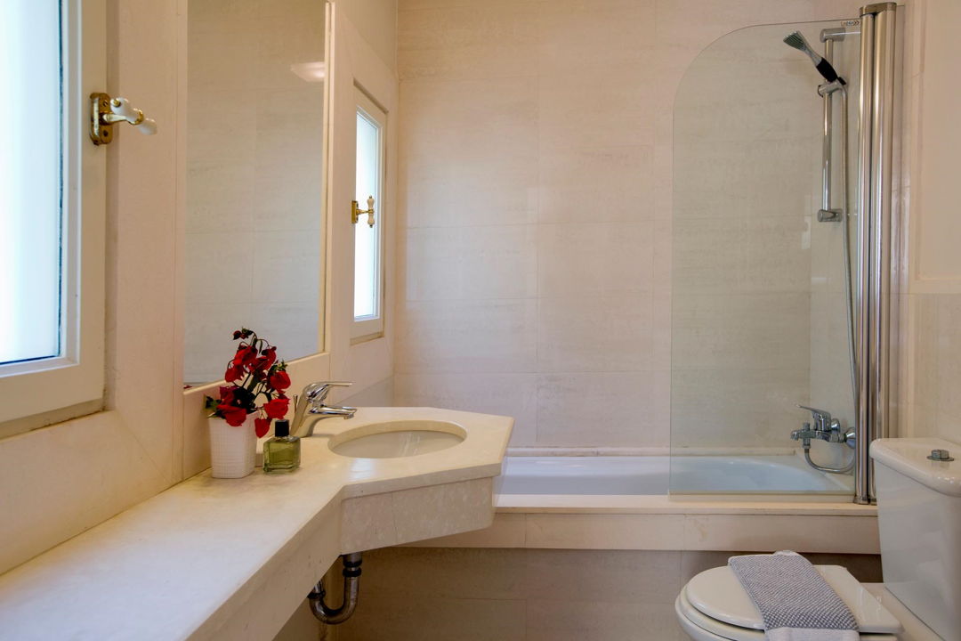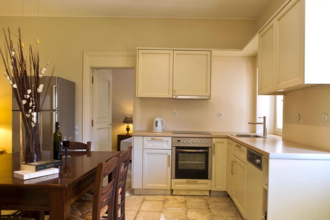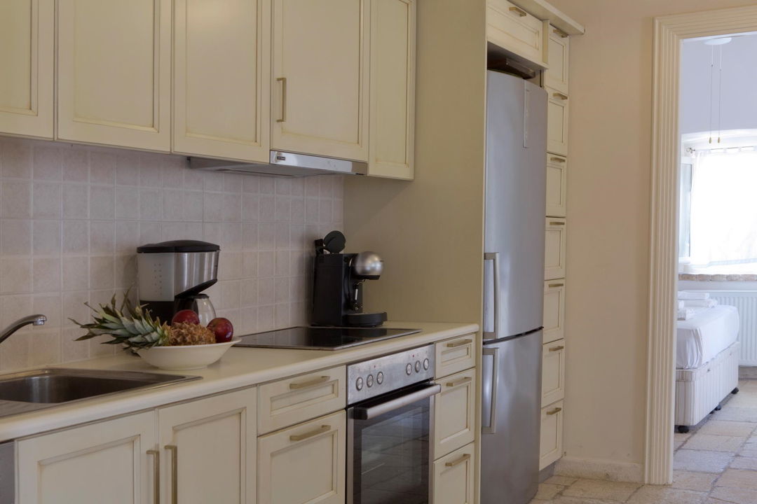 Six convenient bedrooms, all with their own bathrooms, welcome the guests who want to spend a relaxing and tranquil vacation. Three fully equipped kitchens, two on the ground floor and one on the first floor offer all amenities necessary for those who would like to feel at home and be independent.