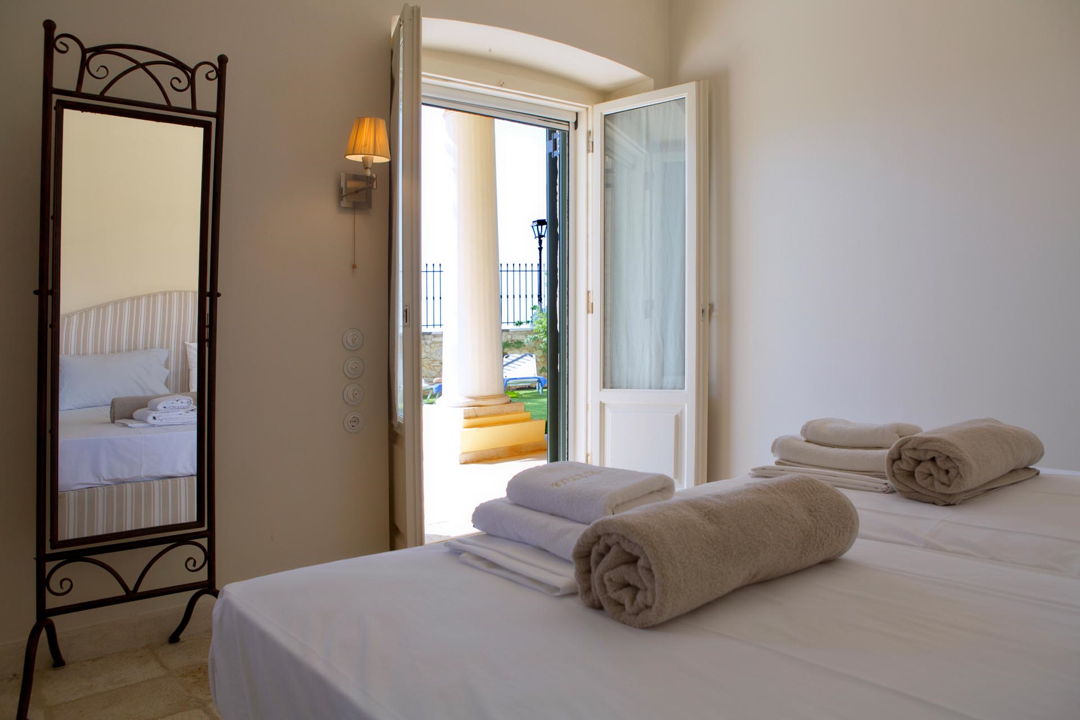 Set right on the beach of Kalami offers magnificent views of the sea and sunrise. The large patio and its three verandahs have been reconstructed and renovated with elegance without losing its traditional character. Where possible the owners even kept the old marble stone tiles and used old solid bricks to the structure in order to preserve the essence of The Mansion.