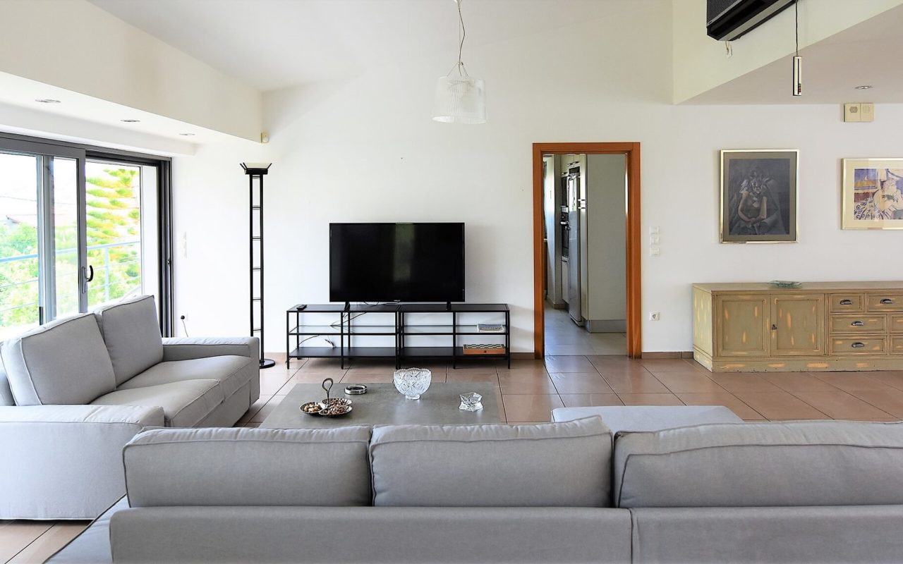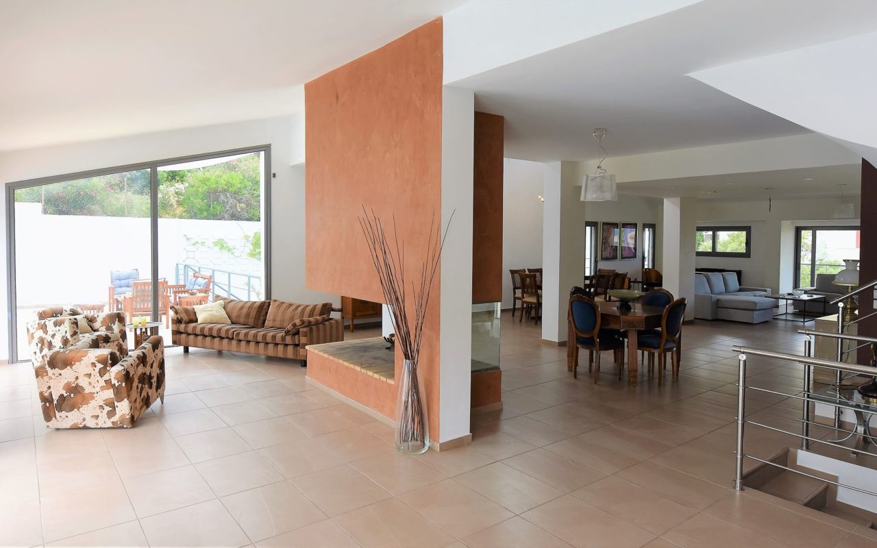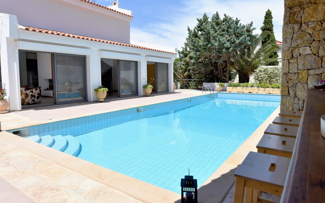Ultra spacious villa Mare with 6 bedrooms, private pool, and beautiful sea view, just 200 meters from the beach, in Athens Riviera for rent.