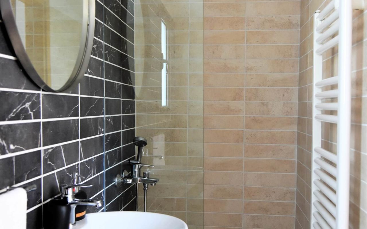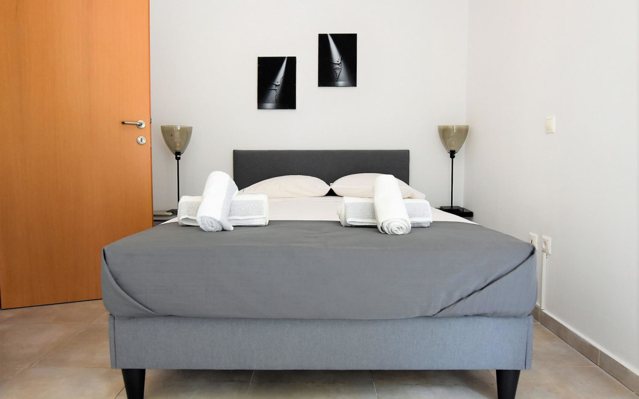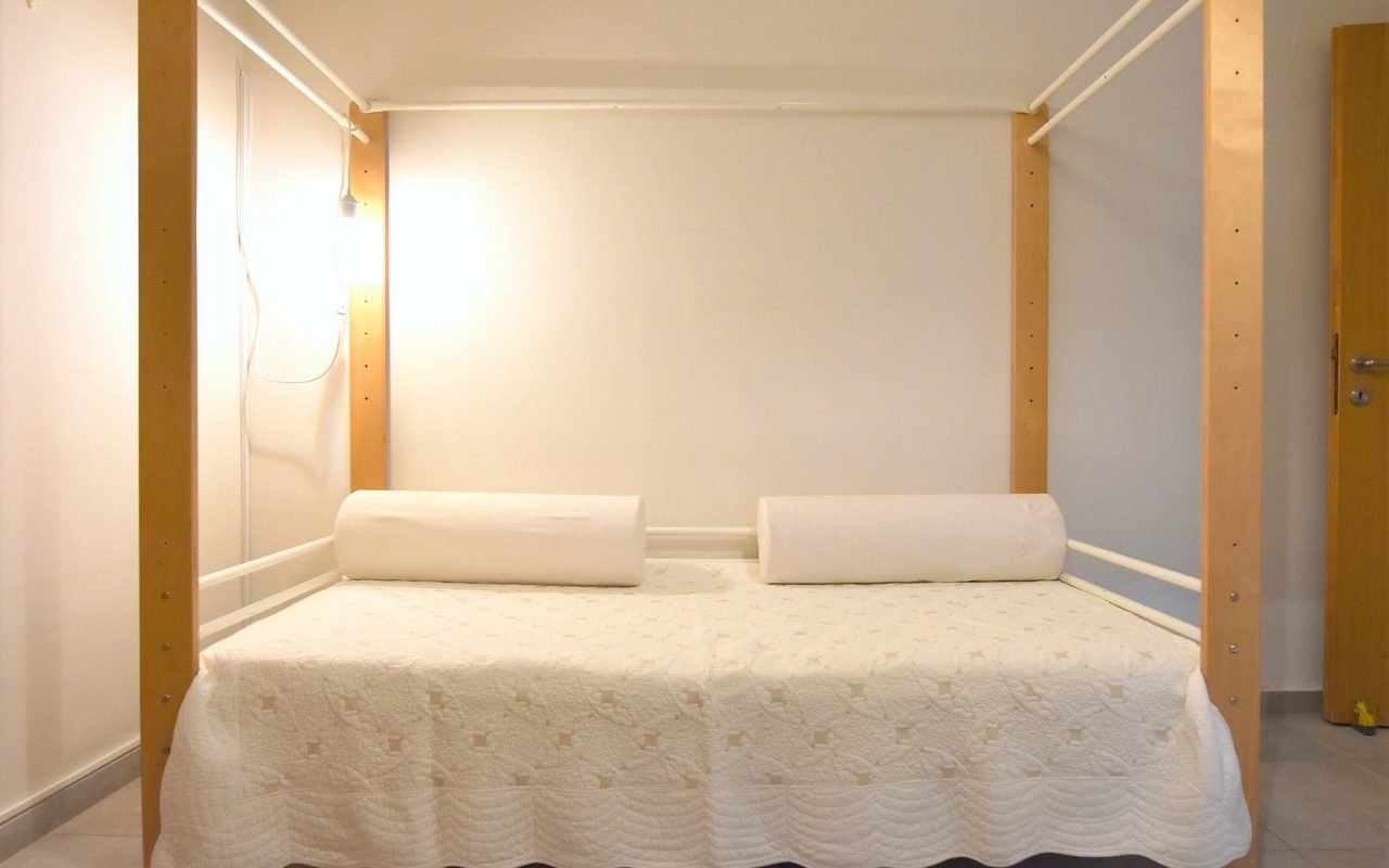 - 1st bedroom with double bed, folding sofa bed, and bathroom