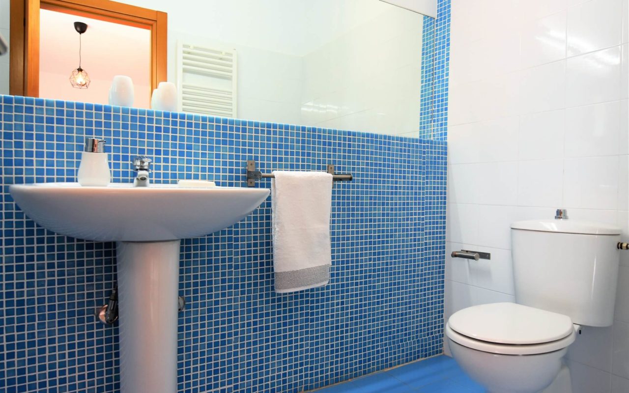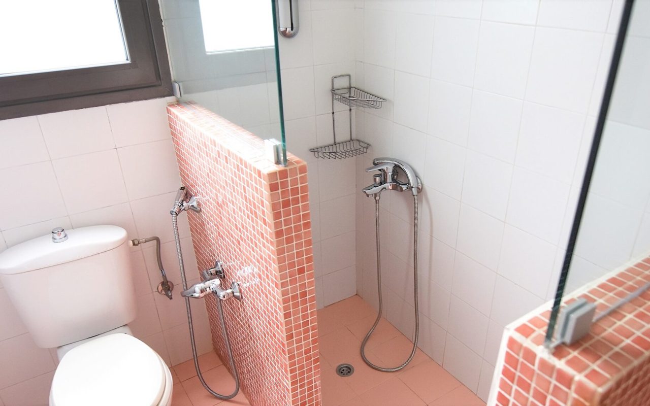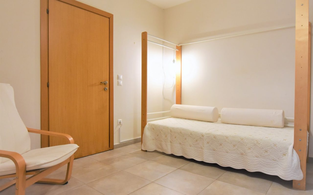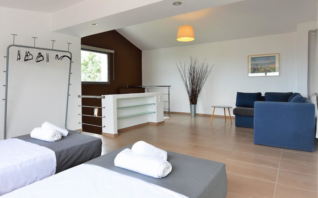 - 6th bedroom with 2 single beds, folding sofa bed, bathroom, and balcony overlooking the sea