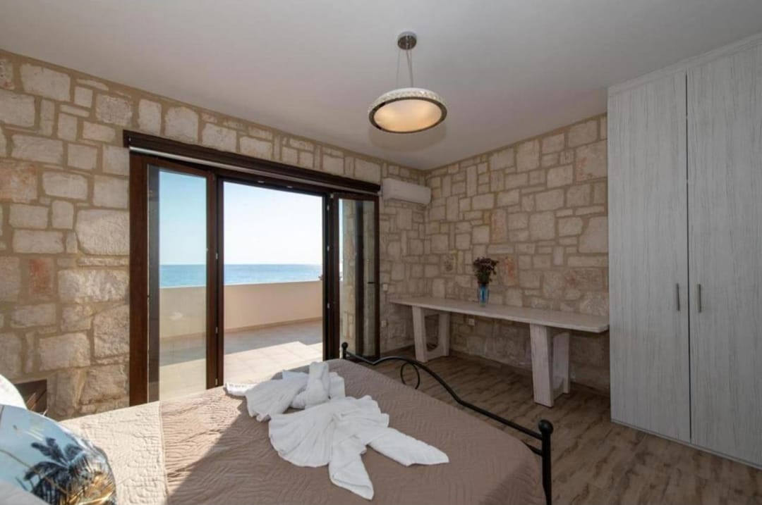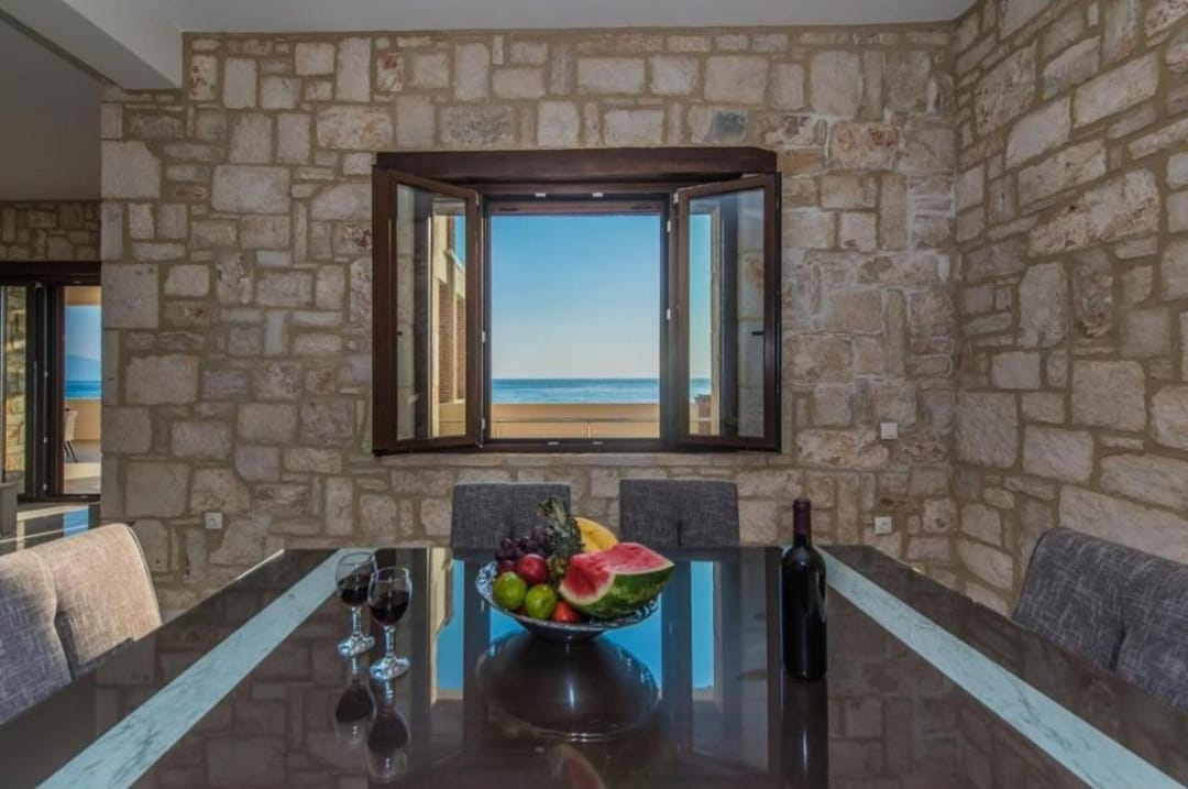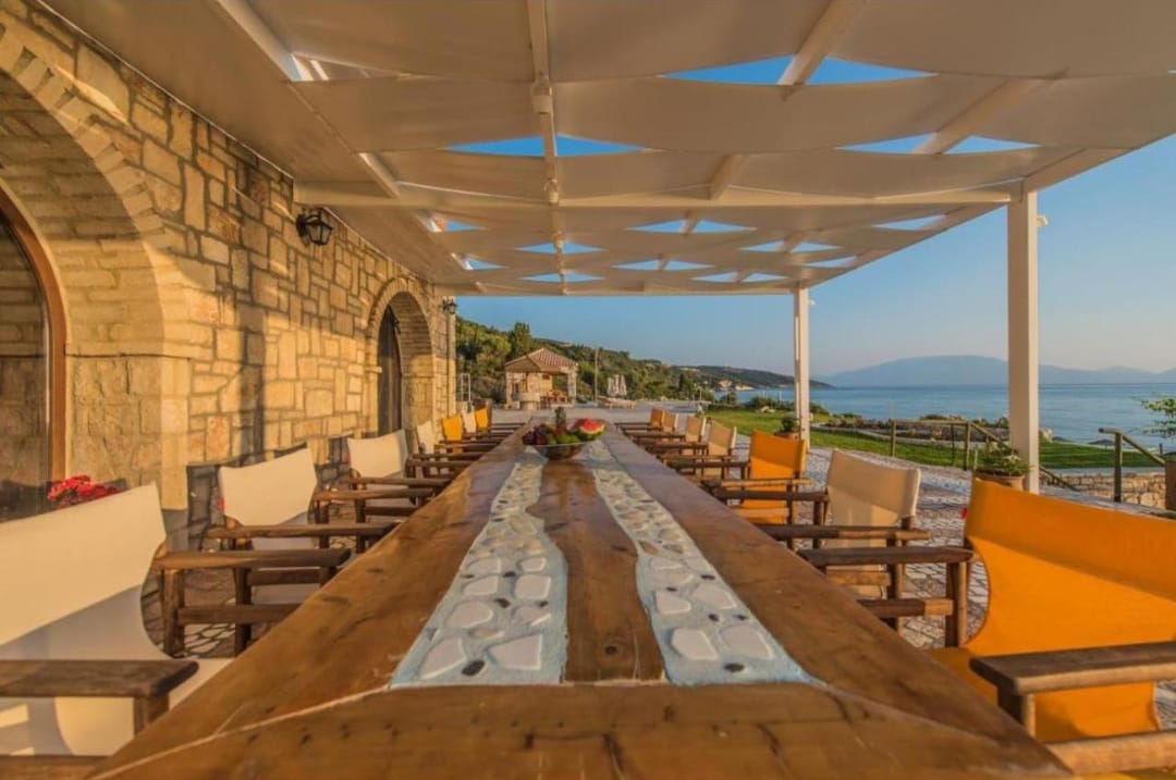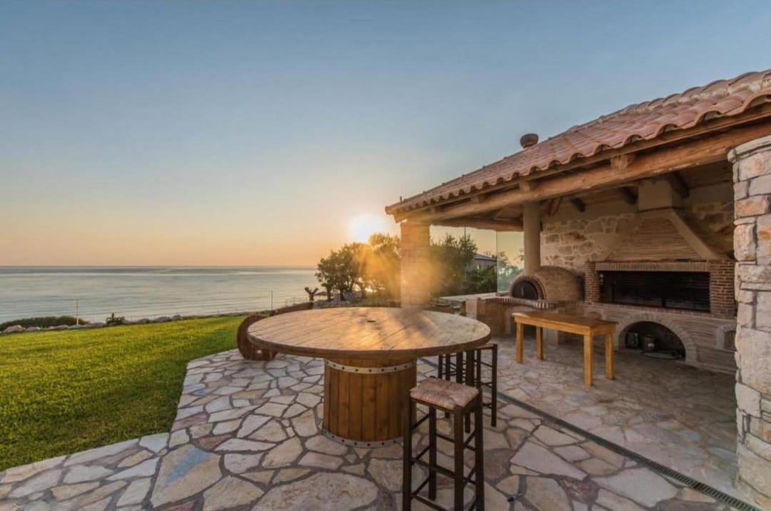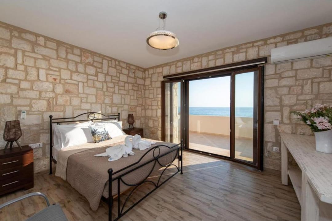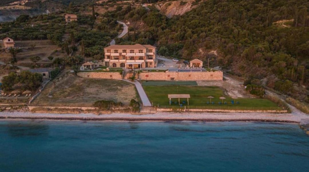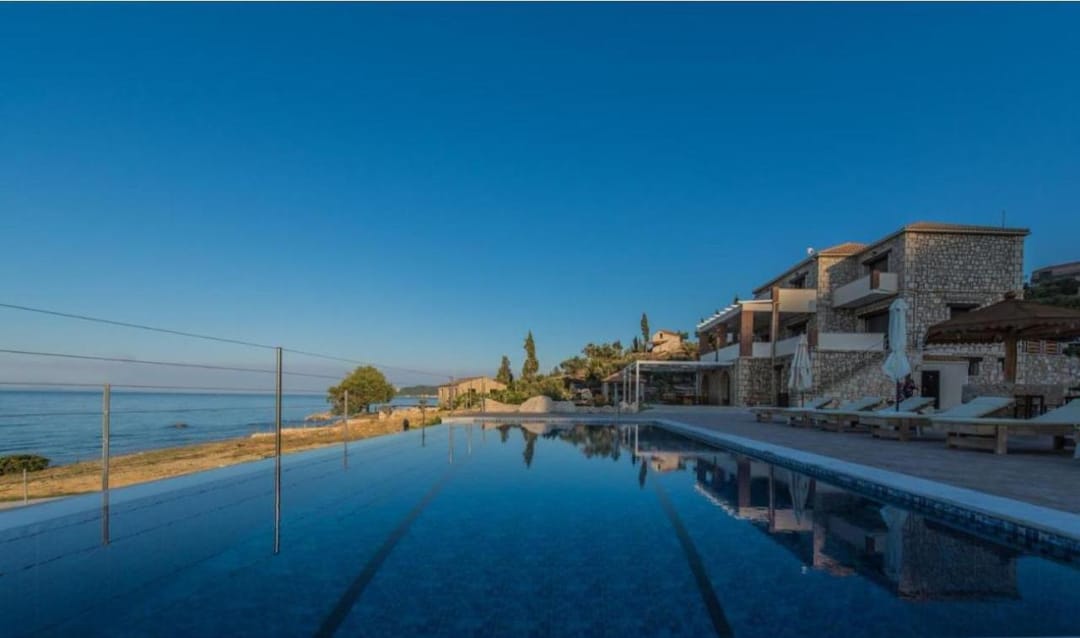 Beachfront spacious villa Margo with 6 bedrooms and a large private pool, located on the beach, near the village of Alykes, on the island of Zakynthos for rent.