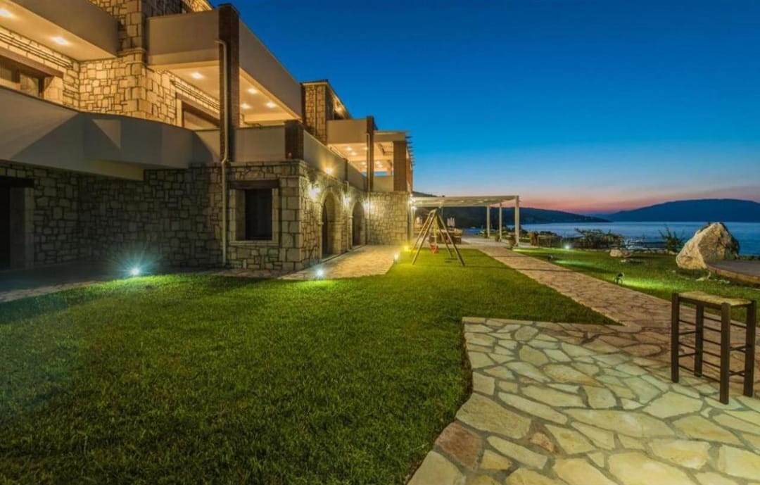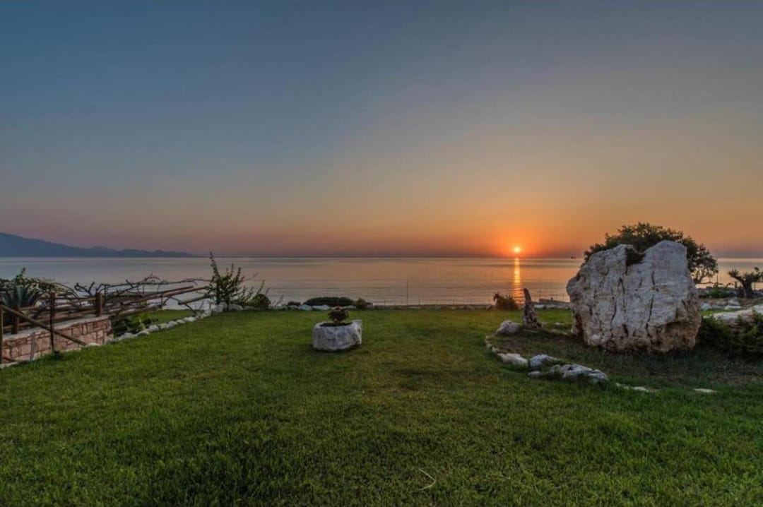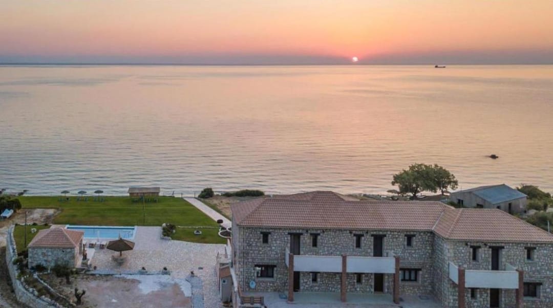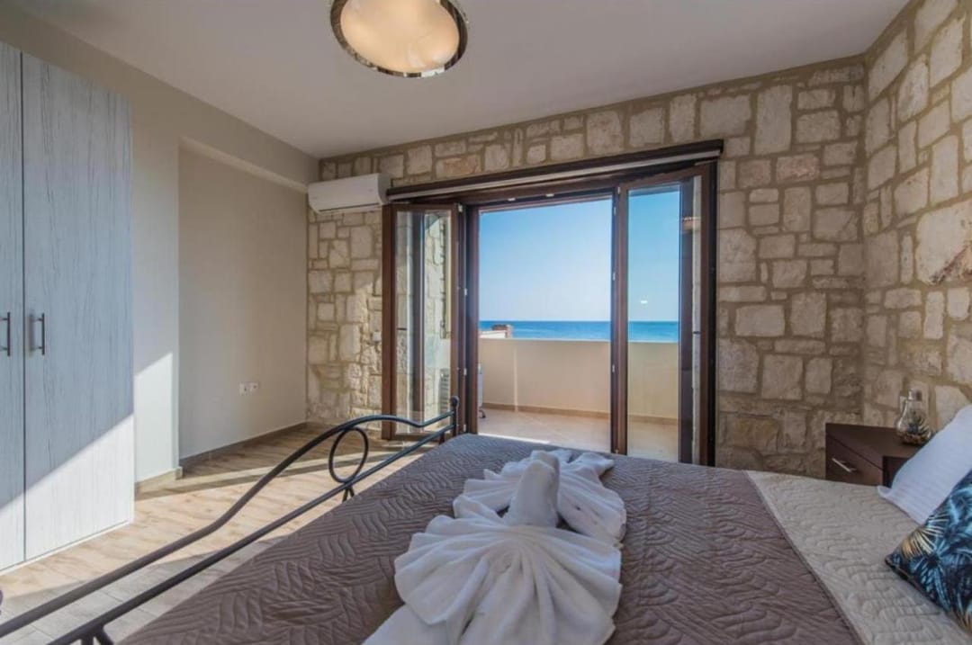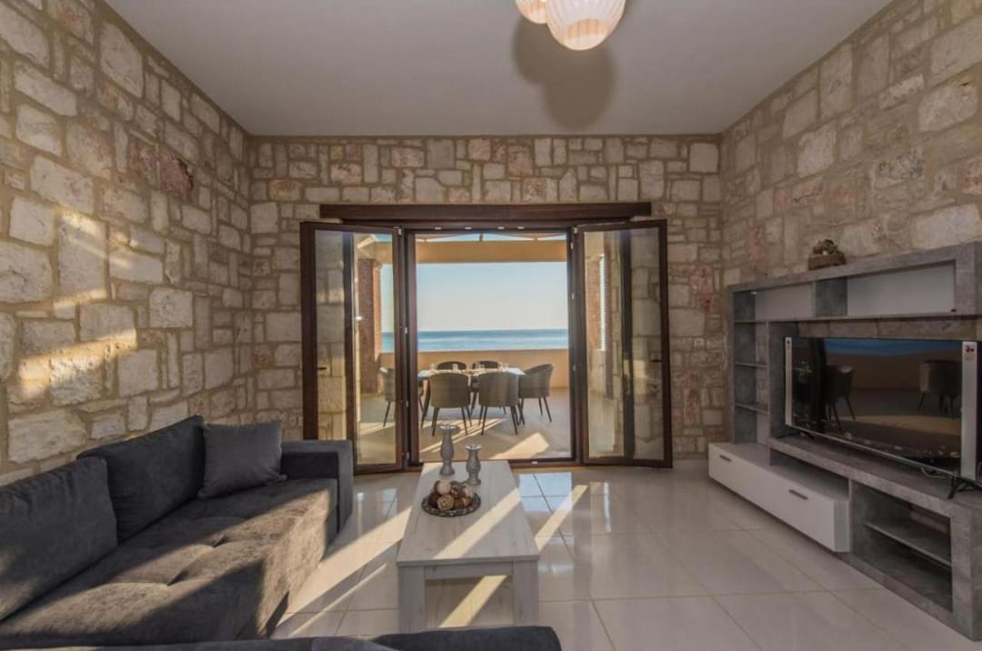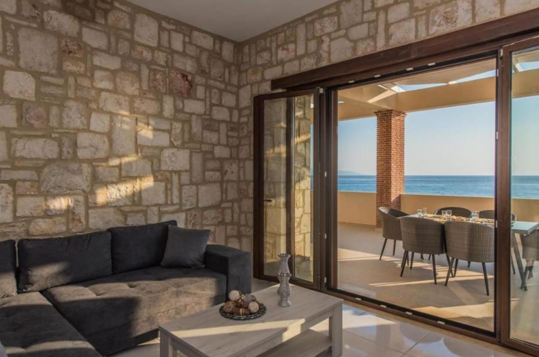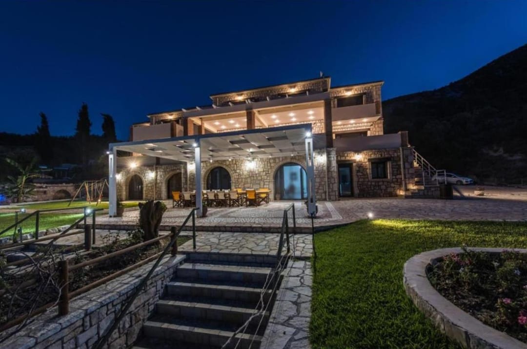 Beachfront spacious villa Margo with 6 bedrooms and a large private pool, located on the beach, near the village of Alykes, on the island of Zakynthos for rent.