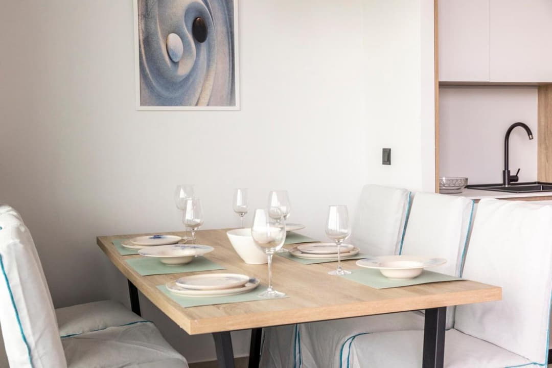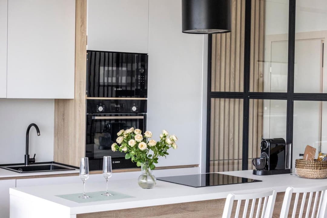 - Dishwasher, fridge/freezer, stove and oven, microwave, Nespresso coffee maker, full set of dishes