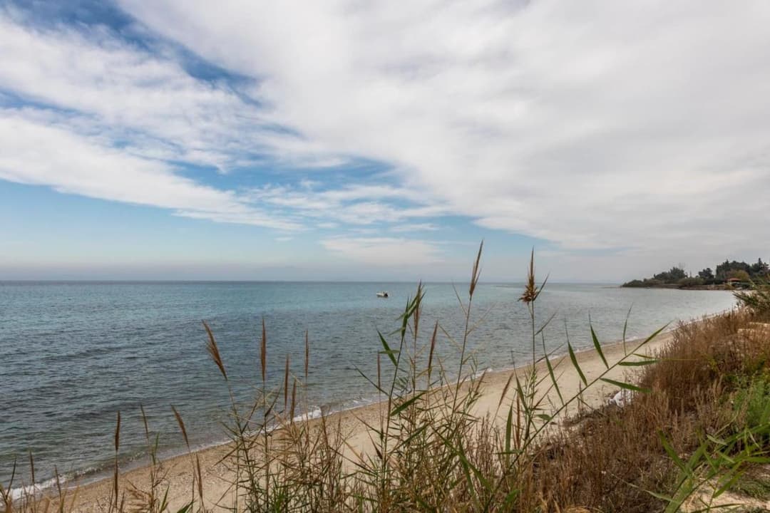 The center of the popular resort village of Polychrono is only 500 meters away. Polychrono combines traditional Greek architecture with modern amenities, including numerous taverns, restaurants, cafes, and shops. The long sandy beach with crystal-clear waters makes it a popular spot for both swimming and water sports. Polychrono Beach is annually awarded the Blue Flag for its cleanliness and water quality.