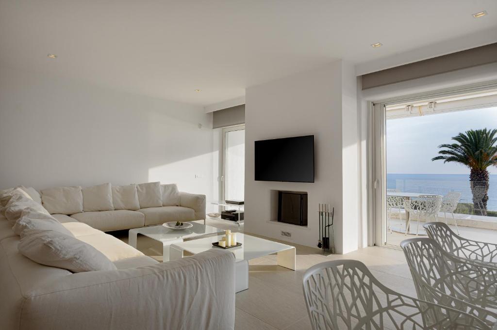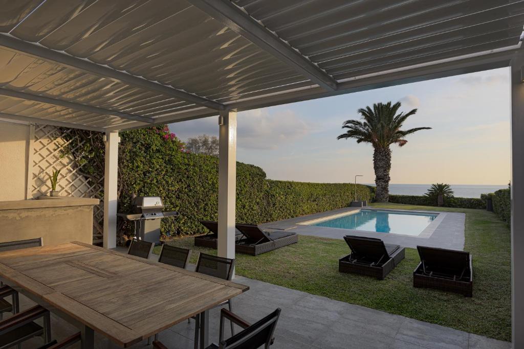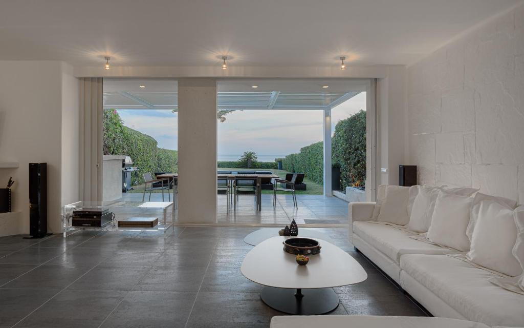Stylish seafront villa Martina with 4 bedrooms and private pool, in Agia Marina area, on the magnificent Athens Riviera, for rent.