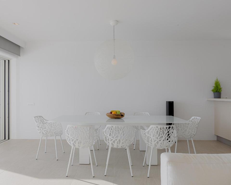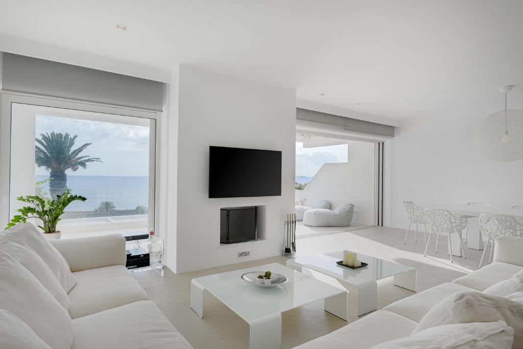 A two-story villa in white tones, built in an impeccable minimalist style. With endless views of the Aegean Sea, this villa is ideal for a group of friends or a large family looking to pamper themselves on the Athenian coast.
