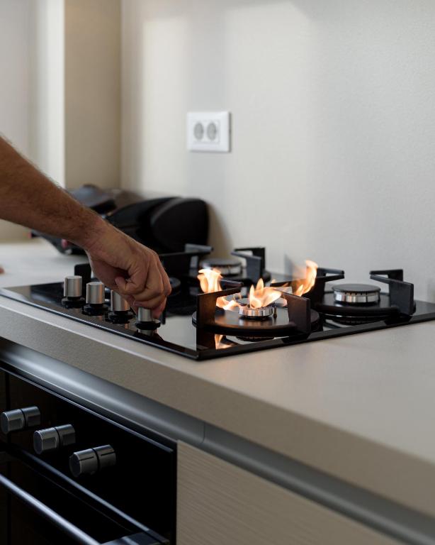 - Refrigerator, kitchen stove, stovetop, oven, toaster, electric kettle, dishwasher, microwave, cleaning products