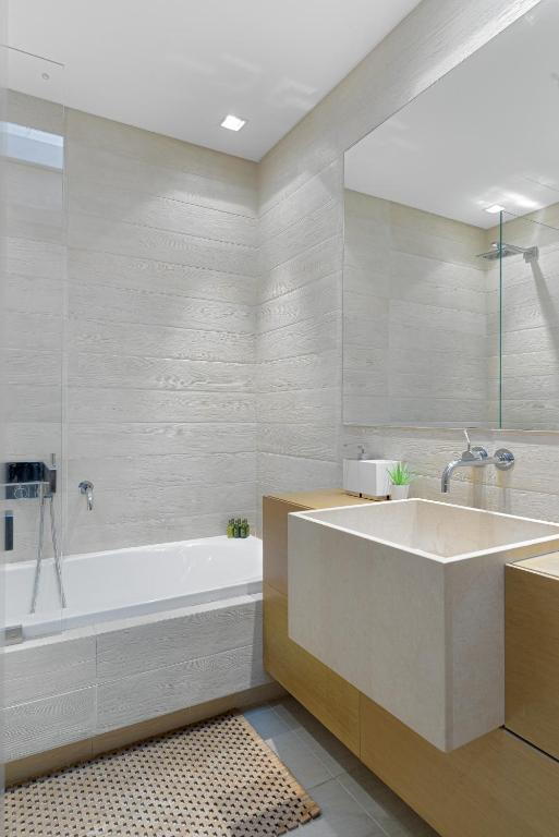 - Bathroom with bathtub and shower