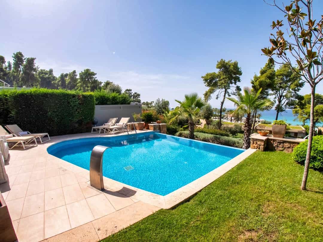 The house is located in a complex of private villas on the territory of the Sani Club Hotel but does not belong to the hotel. The nearest sandy organized beach is only 200 meters from the residence. Thanks to the unique location, the guests of the villa can use the services of the Sani Resort complex, and, at the same time, live in a spacious private villa.