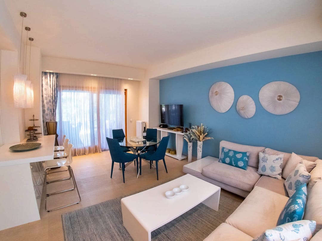 - Living room with a comfortable sofa and TV