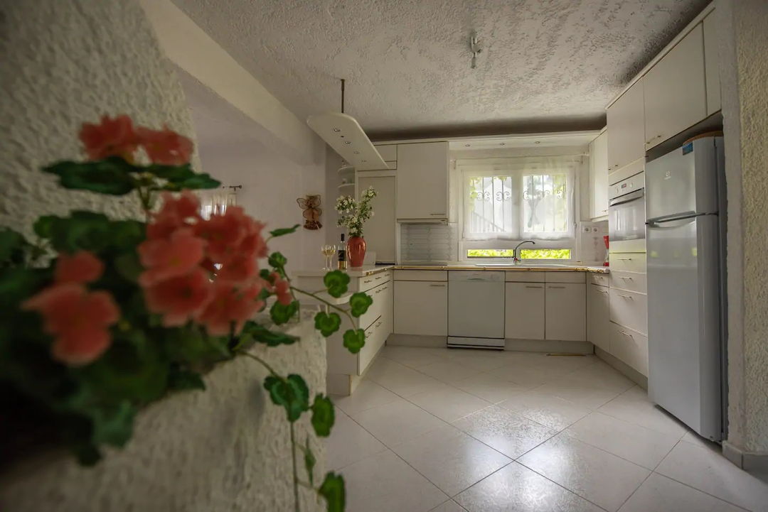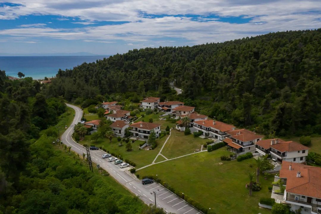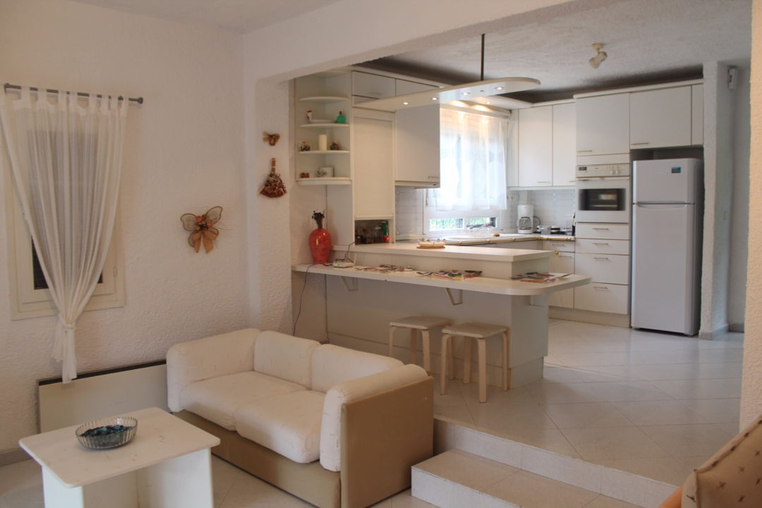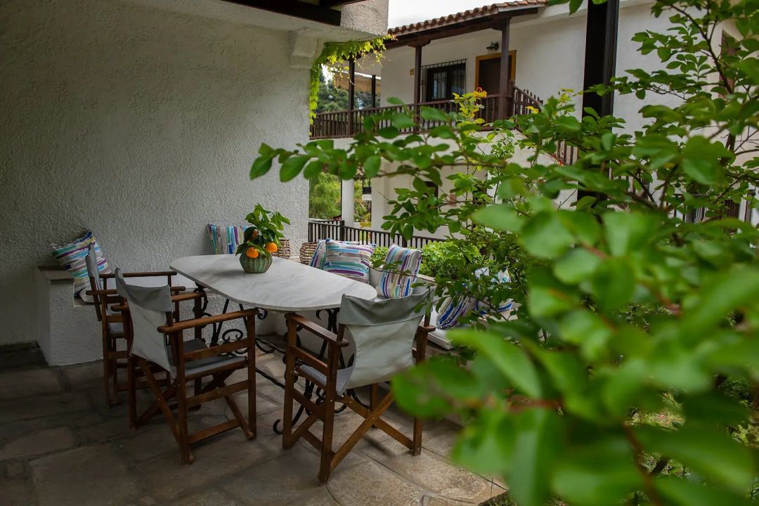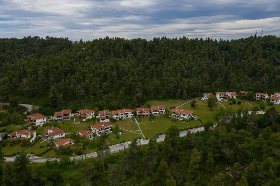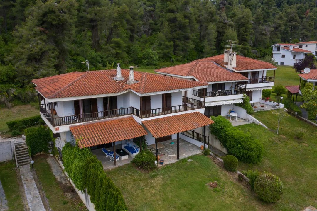 The house is surrounded by a lush pine forest and is located in a complex of villas, 500 meters from a magnificent sandy beach with crystal clear water, in the area of Elani.