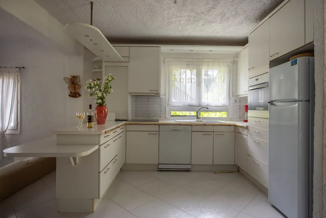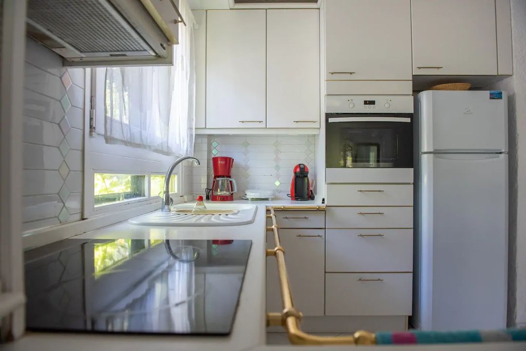 • Stove and oven, fridge/freezer, dishwasher, washing machine, coffee maker, kettle, hairdryer, a whole set of dishes