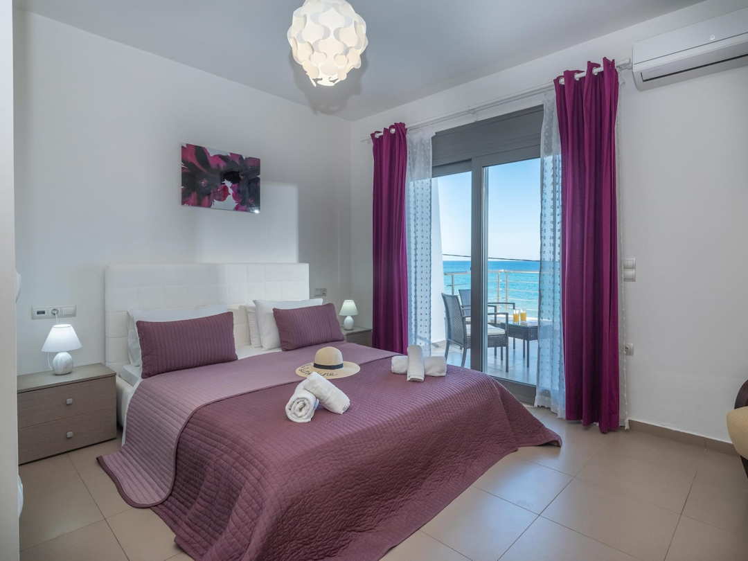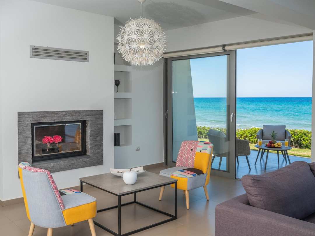 - Breathtaking views of the Cretan Sea through large glass doors