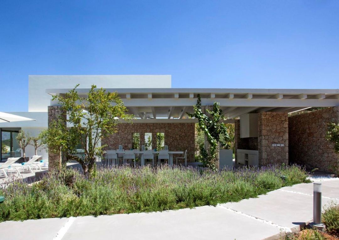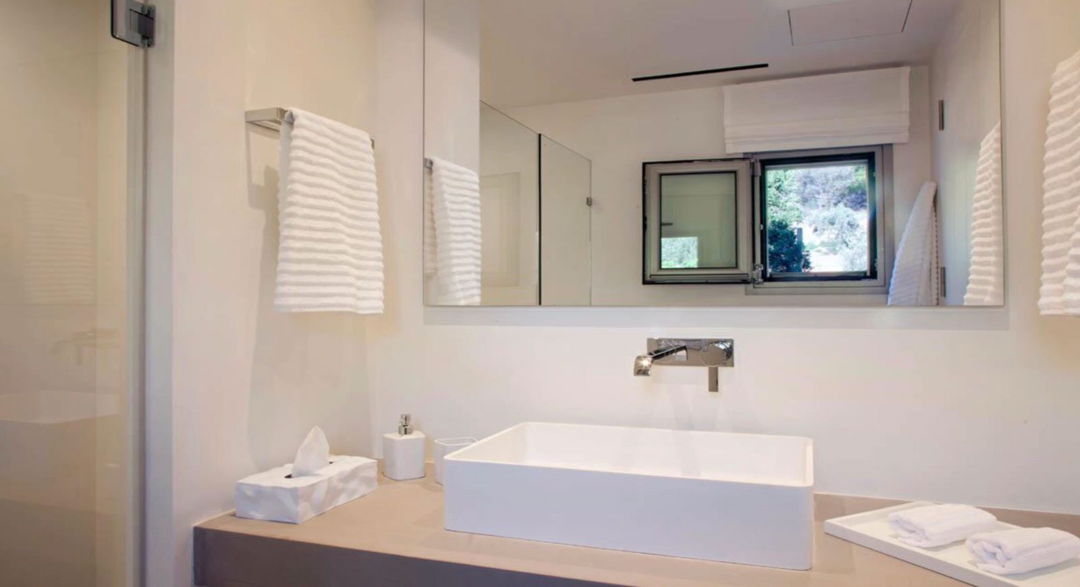 A new comfortable villa consists of the main house and a guest house, with a large swimming pool and sun loungers, outdoor furniture, a barbecue and an outdoor dining area. The design of the villa is made in a modern style with light colours which fill the house with relaxation, sea and sun. The villa is located on a large green plot of 70 acres, with private access to the pebble beach. At 100 meters there is another beautiful sandy beach.