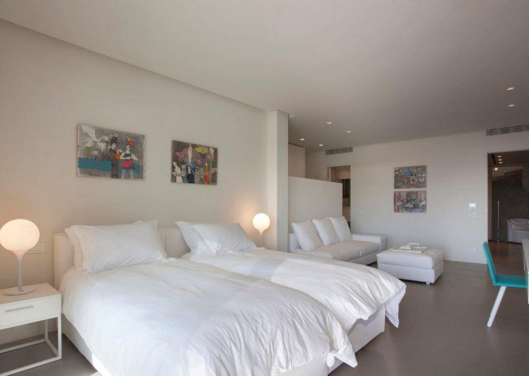 - 1st bedroom with double/twin bed, large sofa, en suite bathroom and sea view