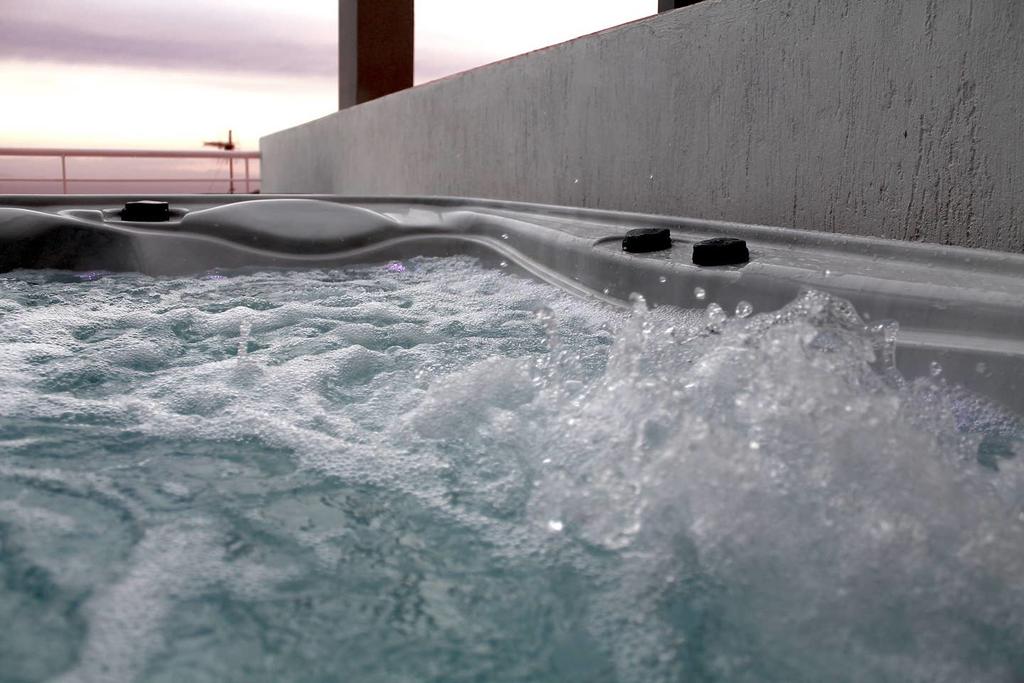 - Spacious terrace with outdoor furniture, hot tub/jacuzzi and panoramic sea view