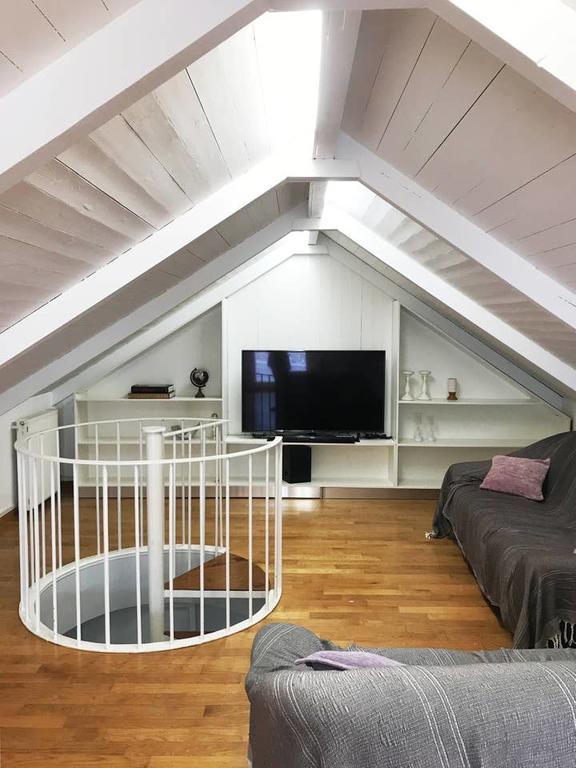 - Attic with a desk and a TV area for relaxation