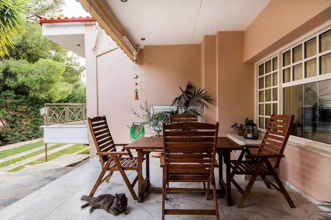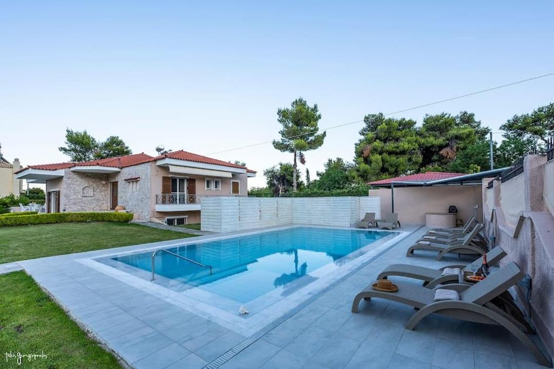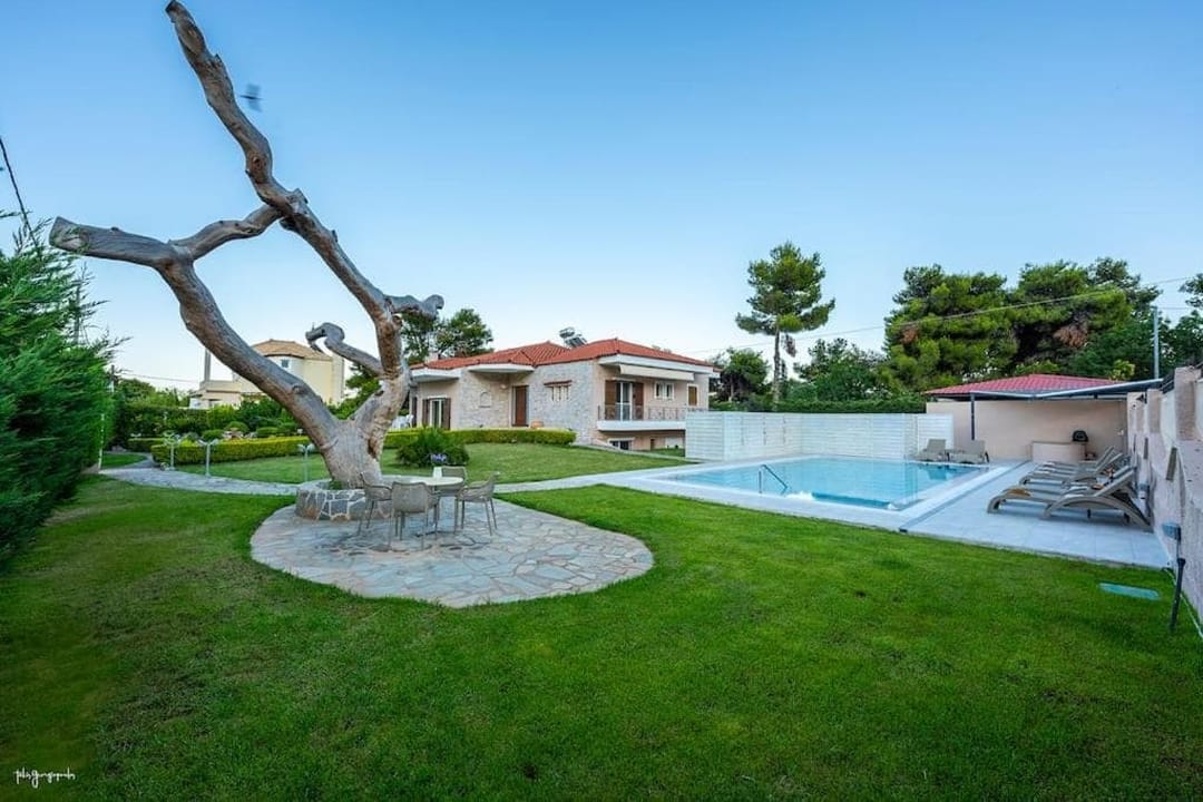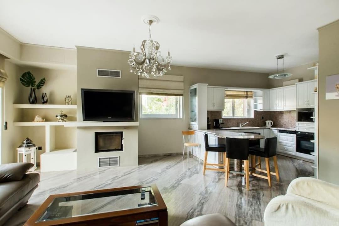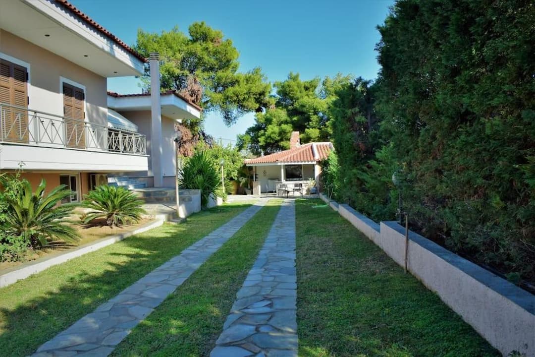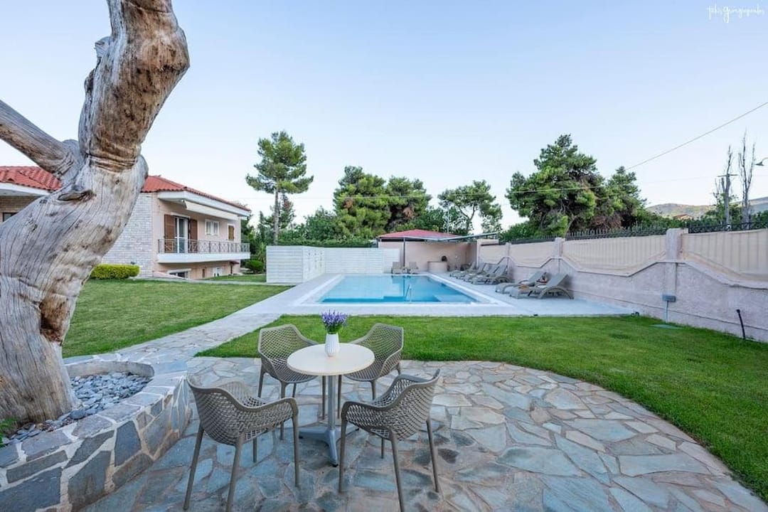 This fully equipped house is ideal for families with children and groups of friends. The big beautiful green garden is ideal for children to play and private swimming pool to chill in the hot summer days. The center of the Nea Makri with shops, restaurants, cafes, and bars is 2 km away, the nearest supermarket is 300 m, and a beach is 1 km away.
