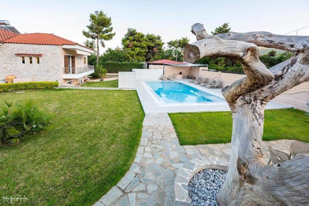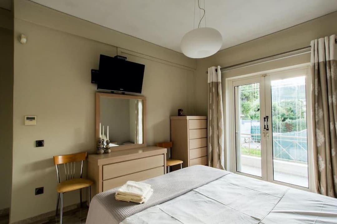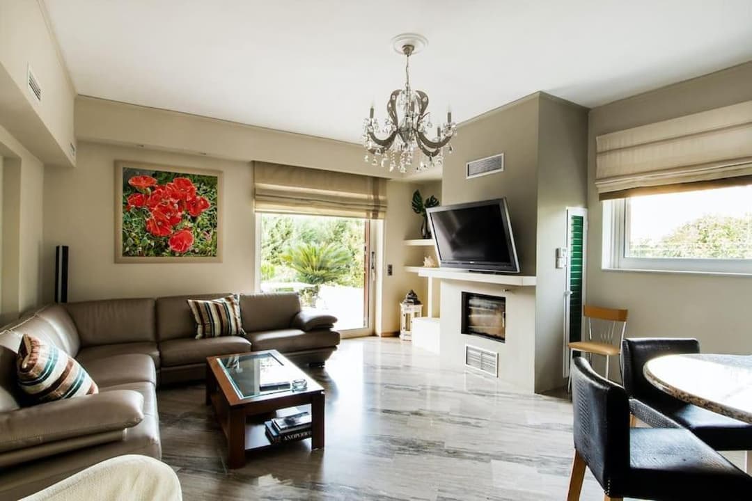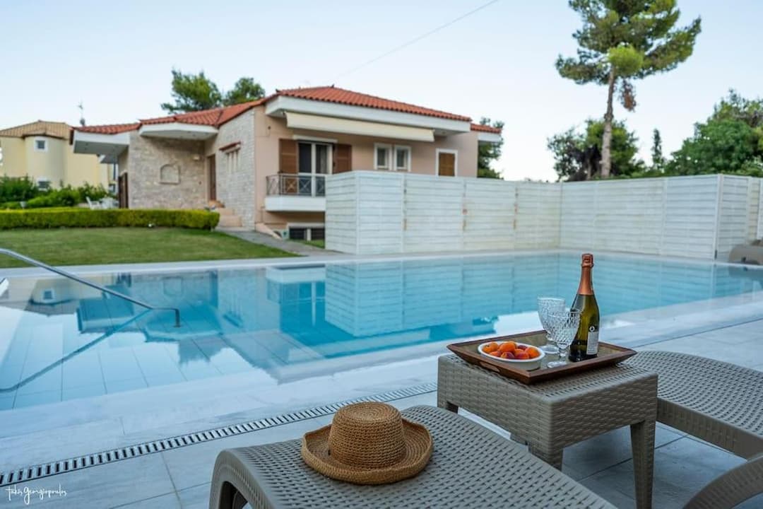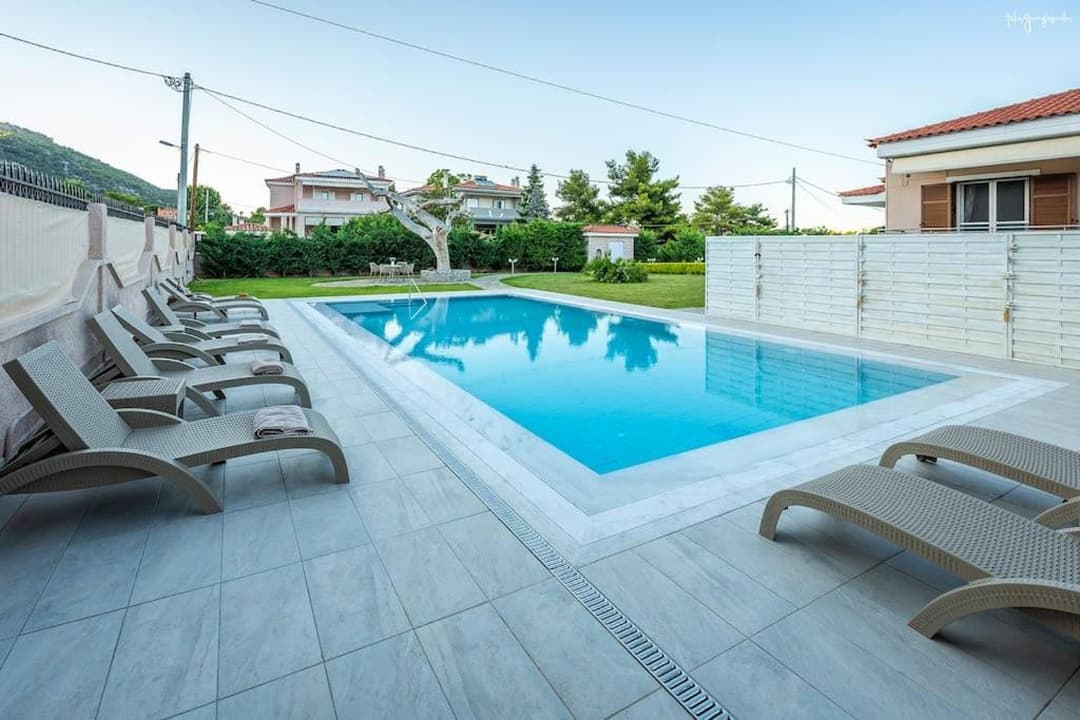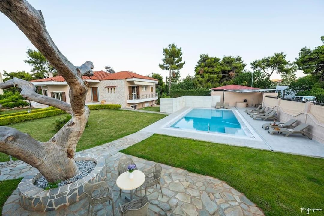 This fully equipped house is ideal for families with children and groups of friends. The big beautiful green garden is ideal for children to play and private swimming pool to chill in the hot summer days. The center of the Nea Makri with shops, restaurants, cafes, and bars is 2 km away, the nearest supermarket is 300 m, and a beach is 1 km away.