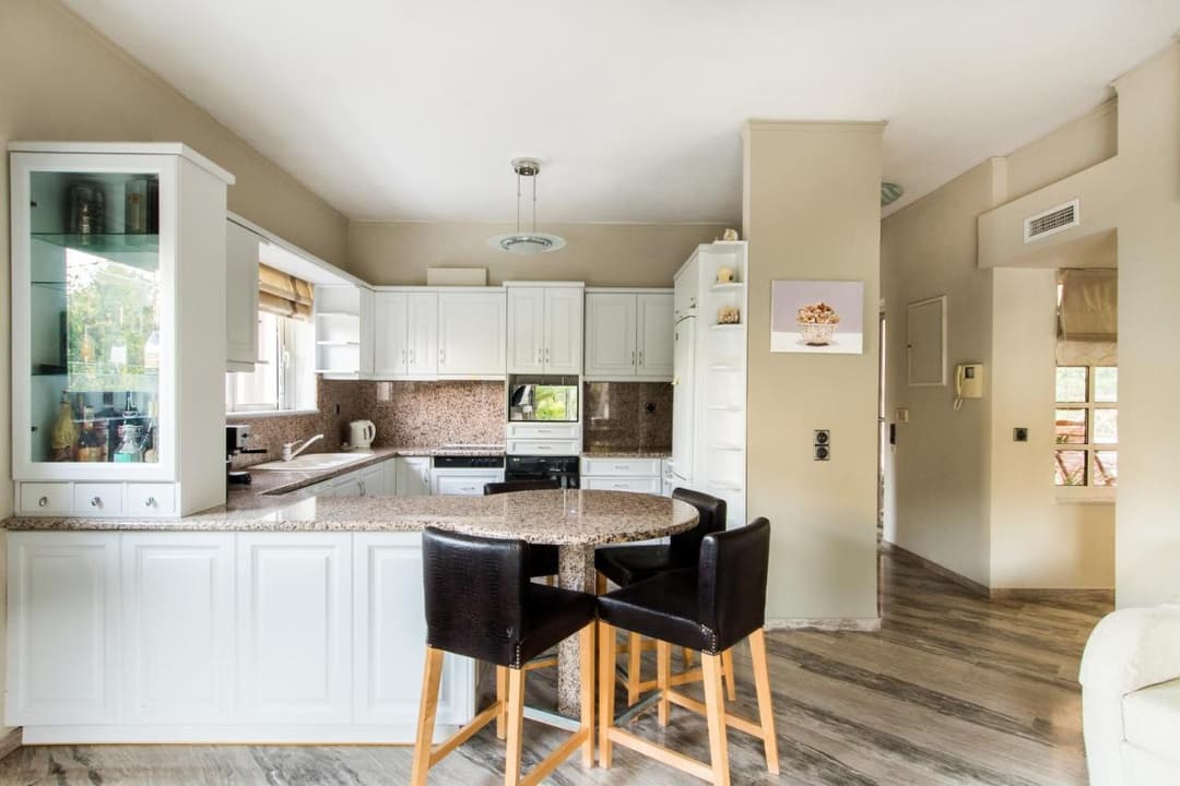 The villa consists of two floors and only the first floor is for rent. It has its own entrance and is completely private. The basement, which is not rented, has separate entrance and no contact with the guests. All outdoor areas of the villa – pool, garden and barbecue – are for the exclusive use of the guests.